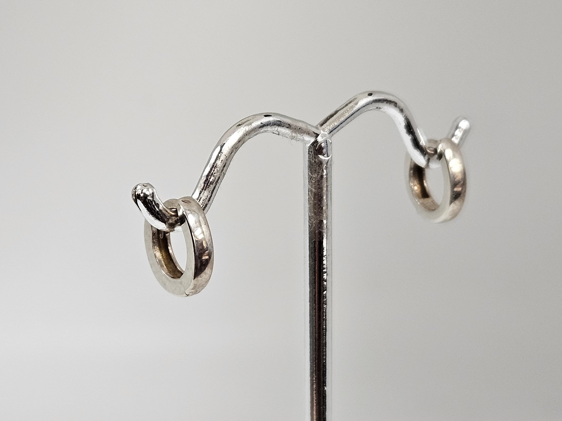 Expertly crafted, these 10mm sterling silver hinged hoop earrings are a classic addition to any jewelry collection. The secure hinge closure offers both convenience and style, while the high-quality silver adds timeless elegance. Perfect for any occasion and suitable for everyday wear.