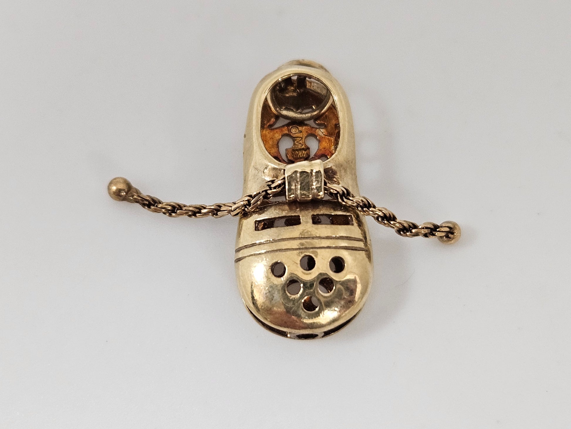 Expertly crafted from 14KT yellow gold, this baby shoe charm is a timeless and precious addition to any charm bracelet or necklace. With its delicate details and high-quality materials, it makes a perfect gift for new parents or a beautiful way to represent your own little one.