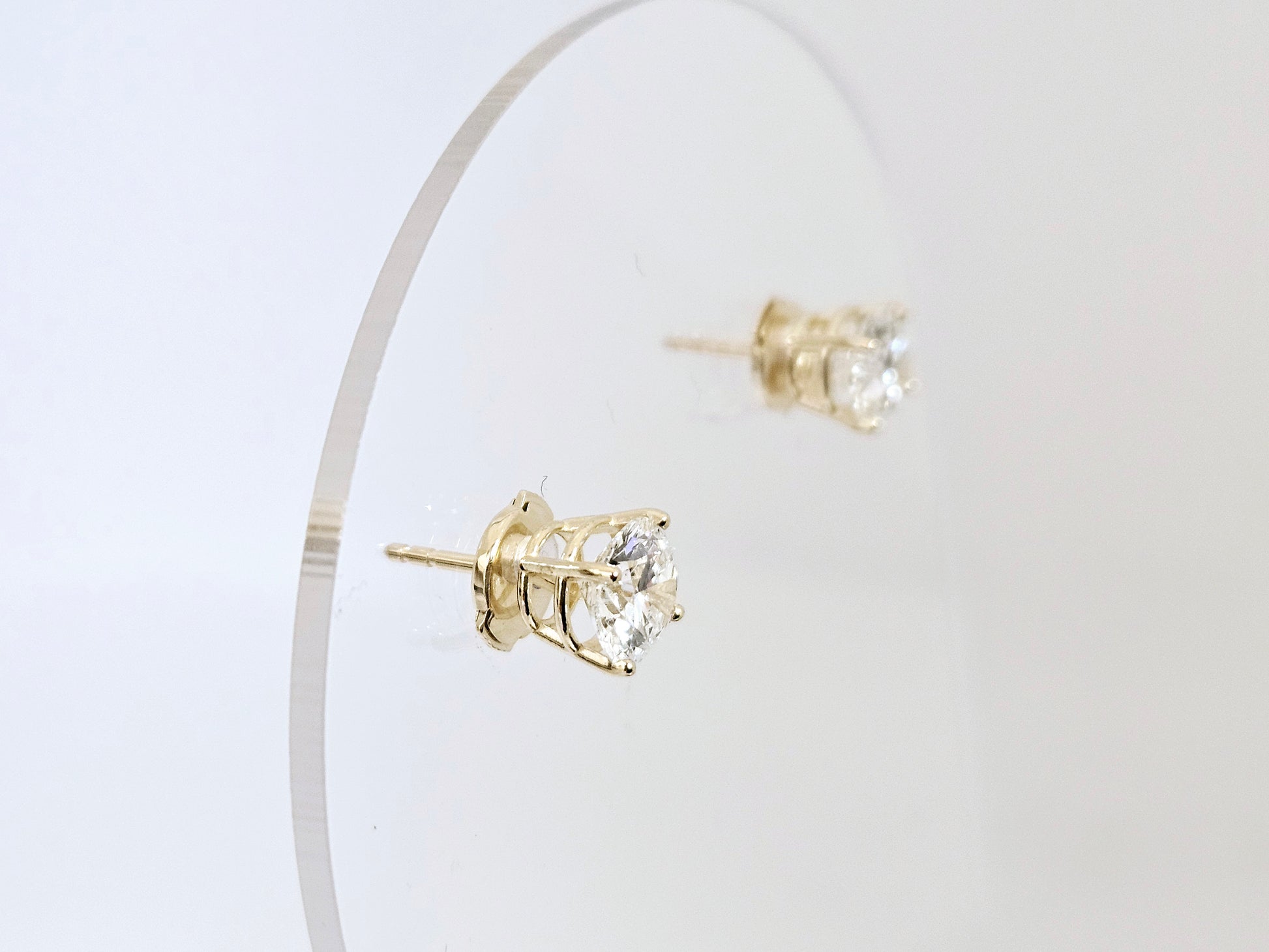 These 2cttw LG Dia Ear studs are certified by IGI to be D color and vs1 clarity, ensuring high quality and clarity. Made of 14k yellow gold, these studs are both durable and elegant. Plus, with the included protective coating, you can wear them worry-free for years to come.