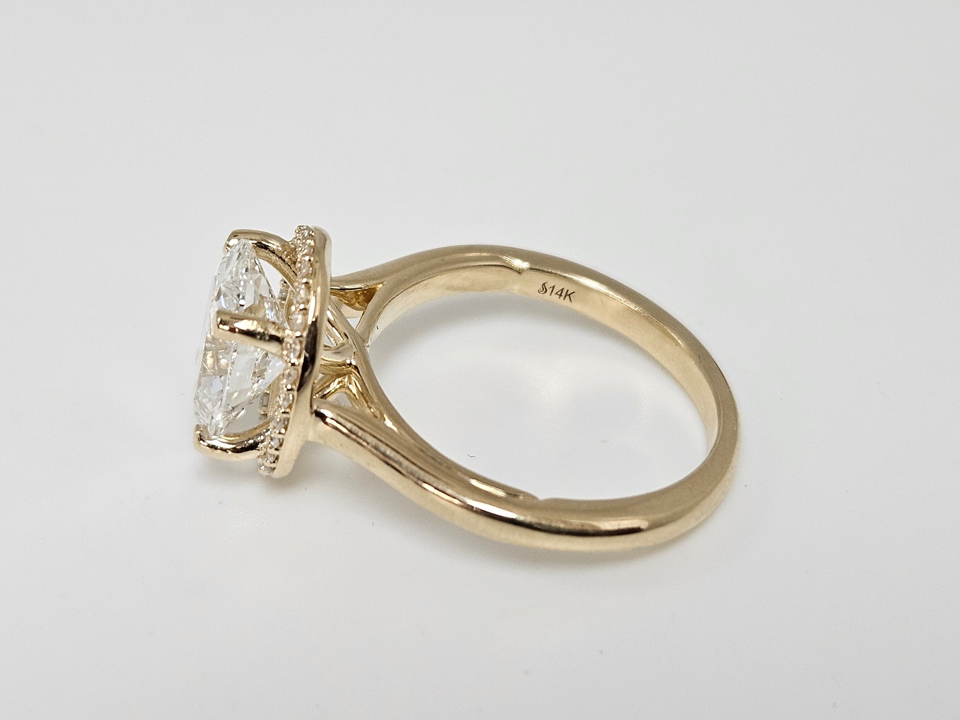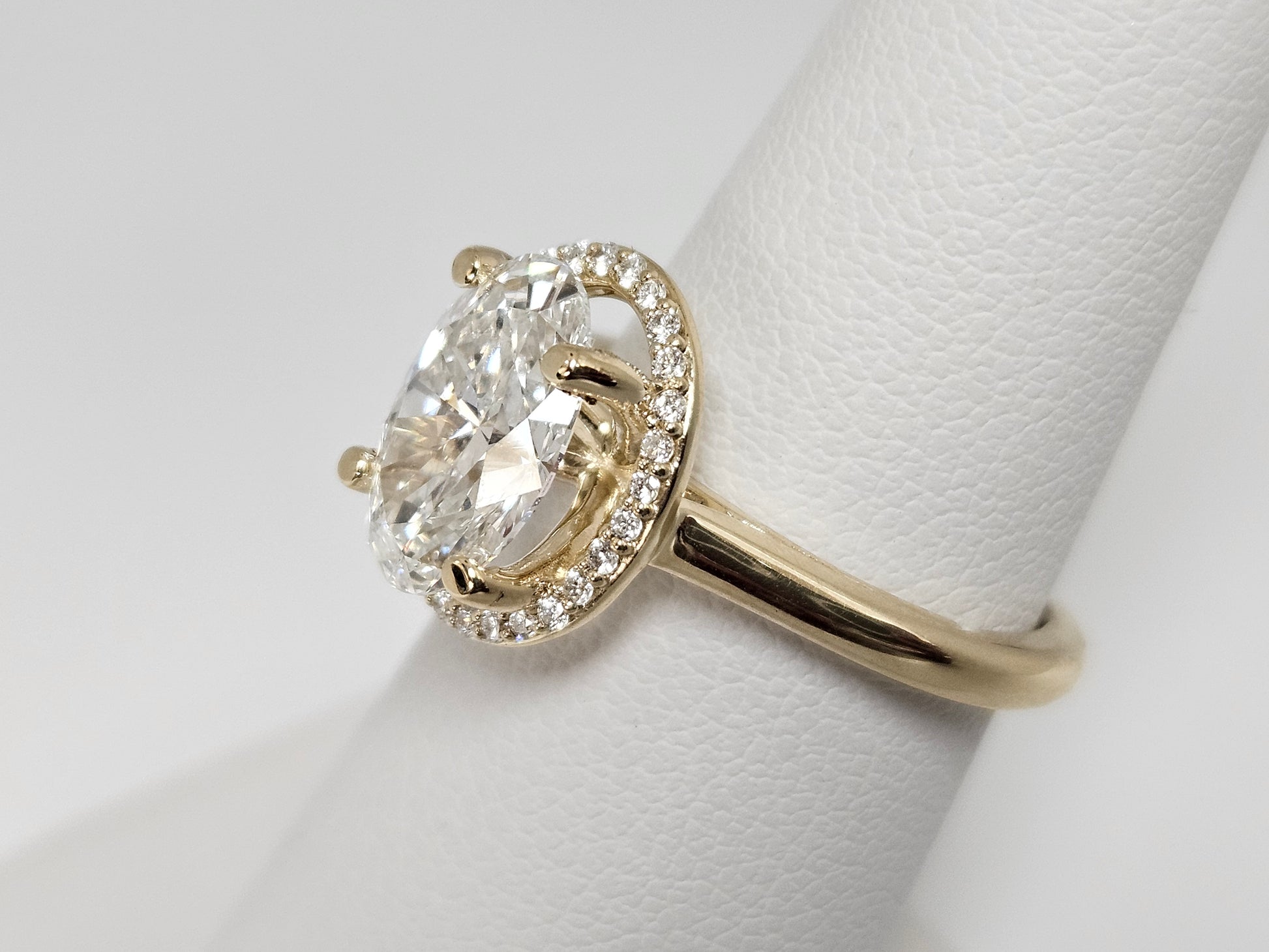 OV 2.09ct halo LG DIA RG 2.19cttw 14KYG IGI E/VVS1 4.1g Sz6