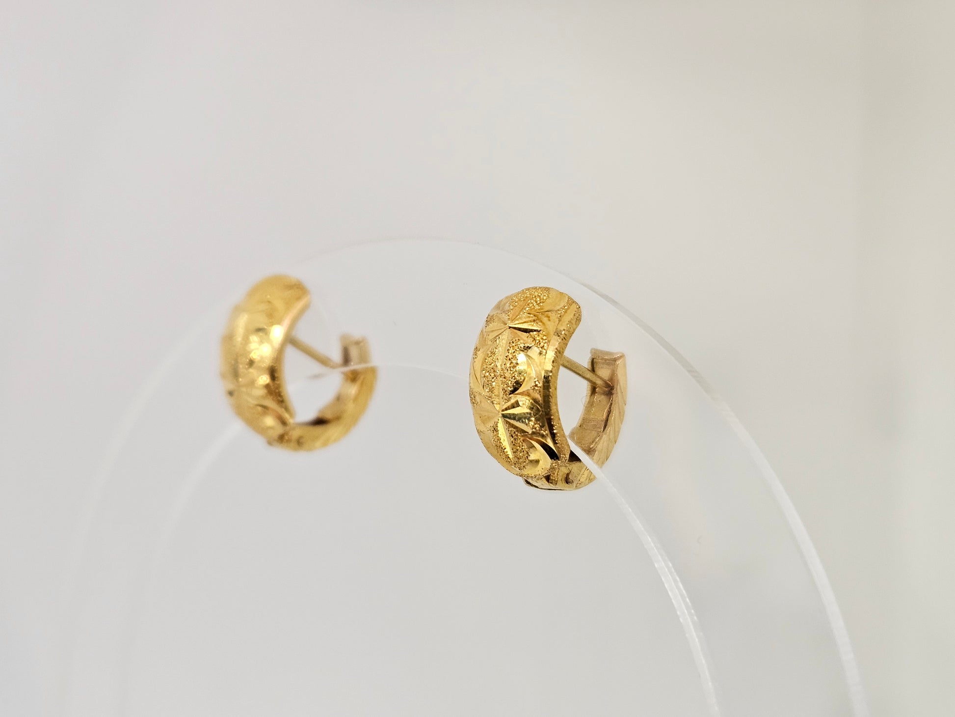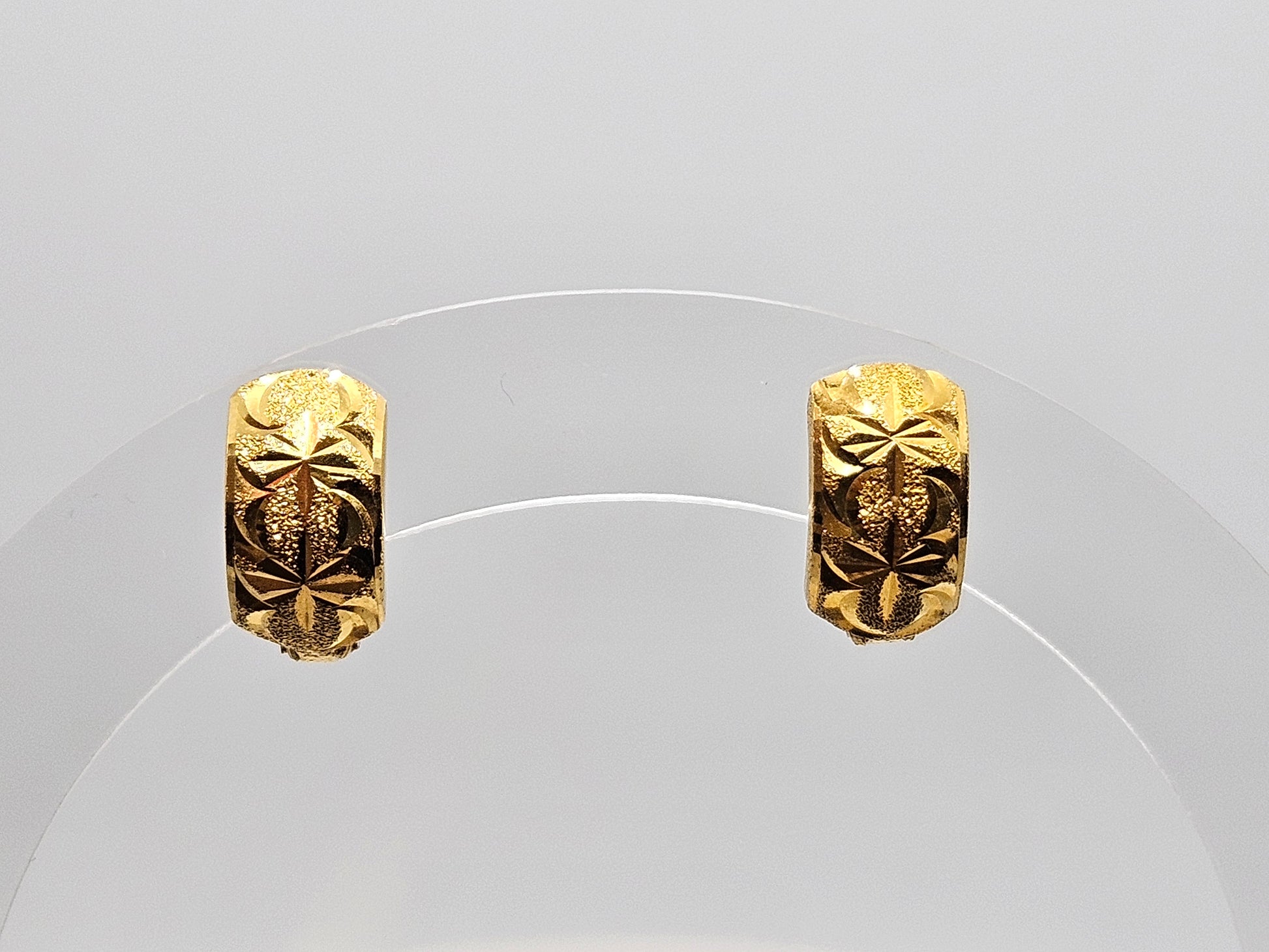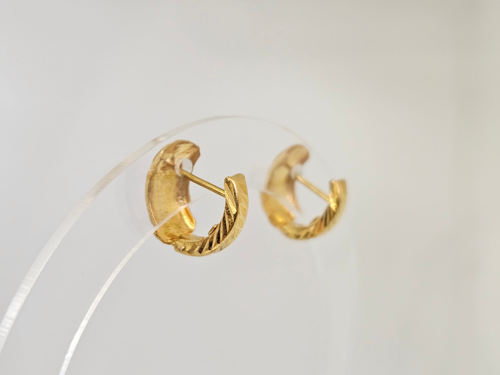 Expertly crafted from 22KT yellow gold, these huggie earrings offer a luxurious and timeless accessory for any occasion. With their elegant design and high-quality materials, these earrings are sure to make a statement while adding a touch of sophistication to any outfit. Perfect for the fashion-forward individual looking for a touch of glamour.