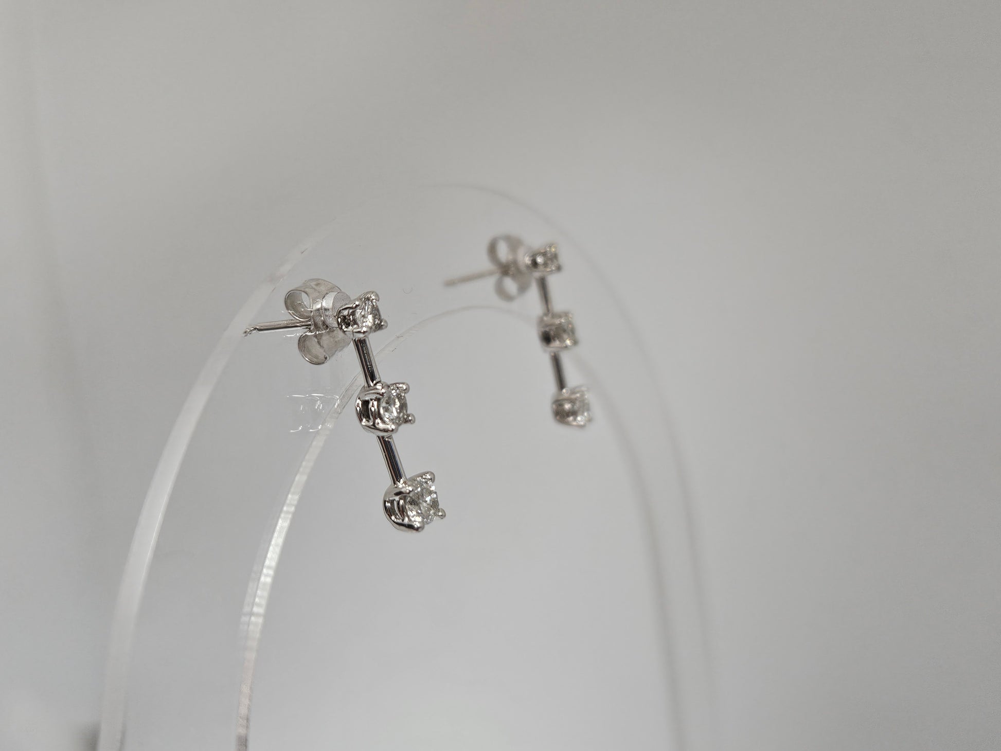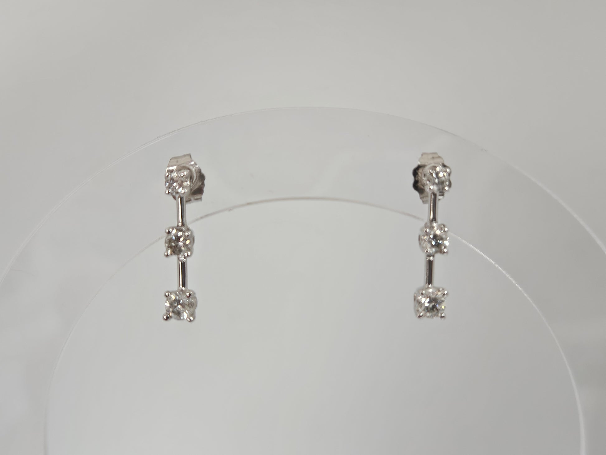 3 Stn Earrings Studs .50cttw Dia 14kWG