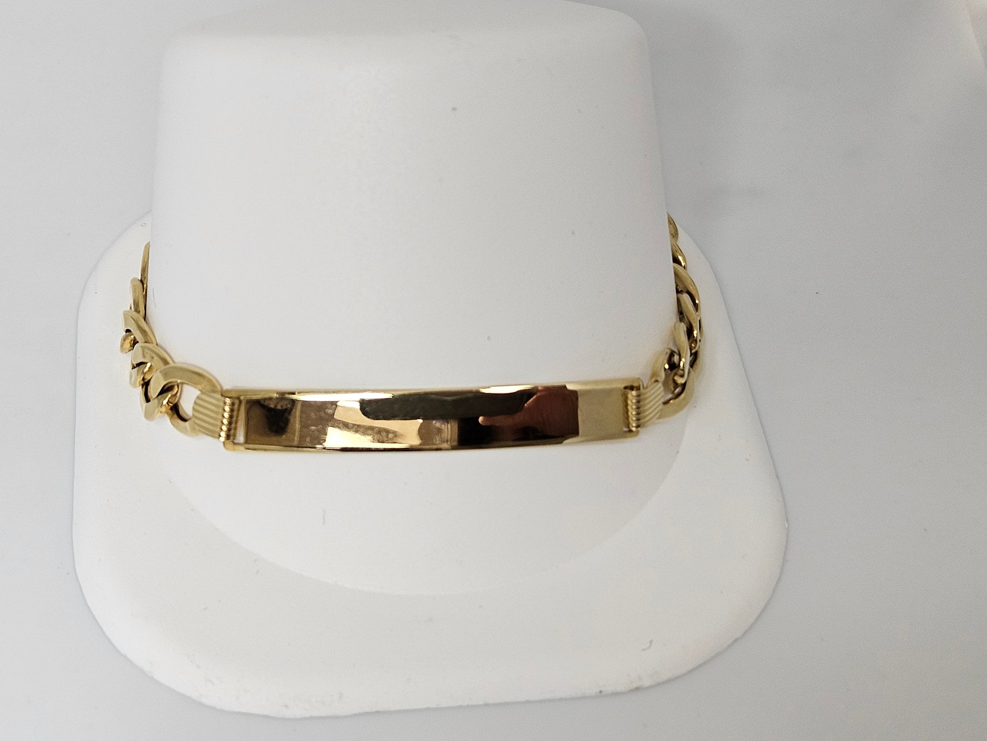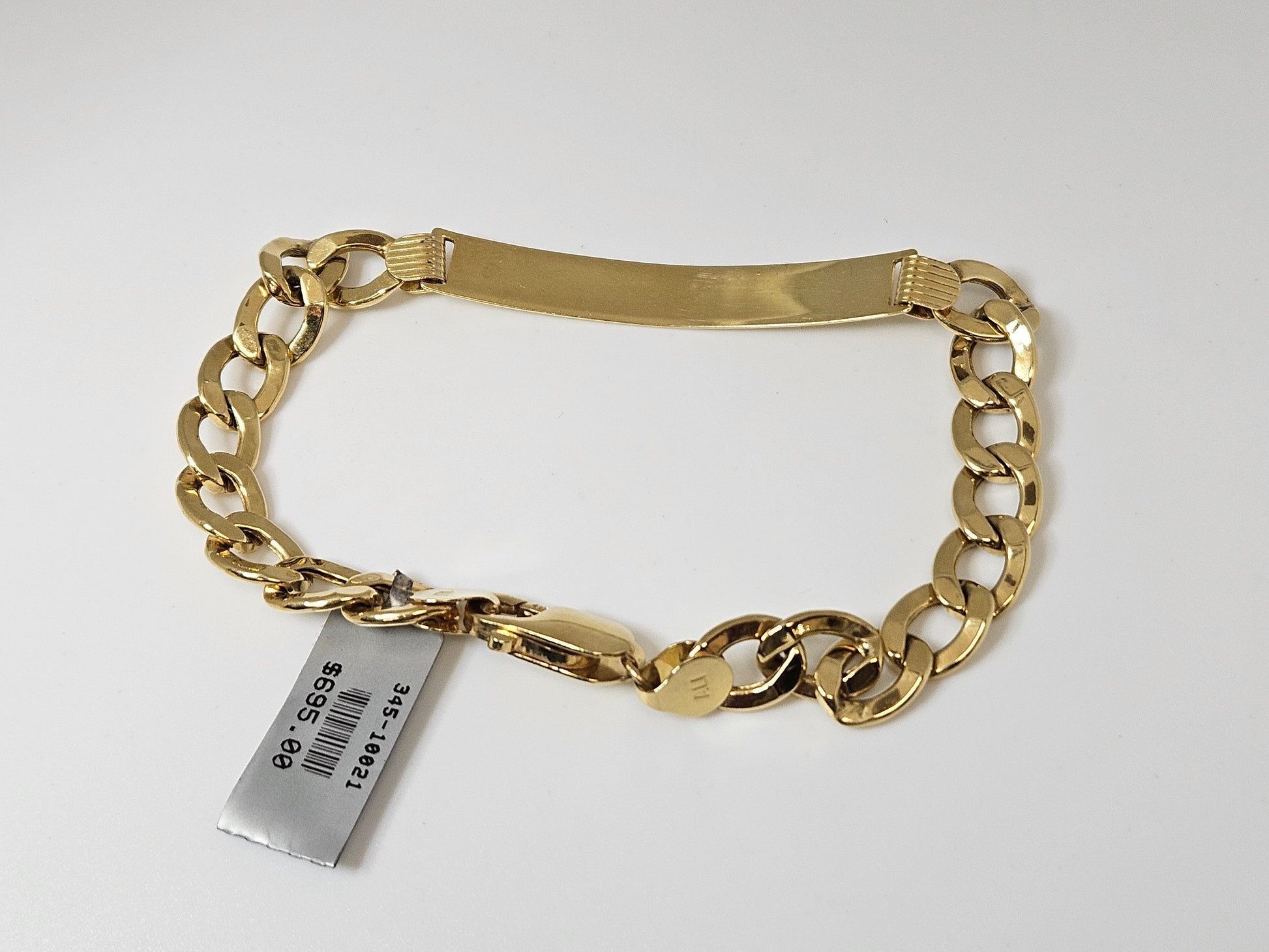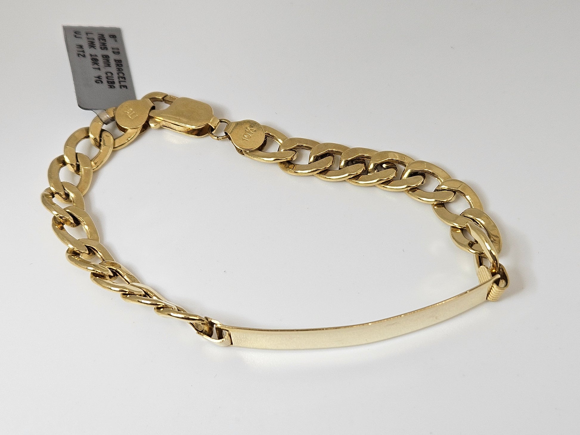 Upgrade your style with this 8" ID bracelet for men. Made of 10KT yellow gold and featuring a classic 8mm Cuban link design, this bracelet adds a touch of sophistication to any outfit. Weighing 8.7 grams, it's a comfortable accessory for everyday wear.