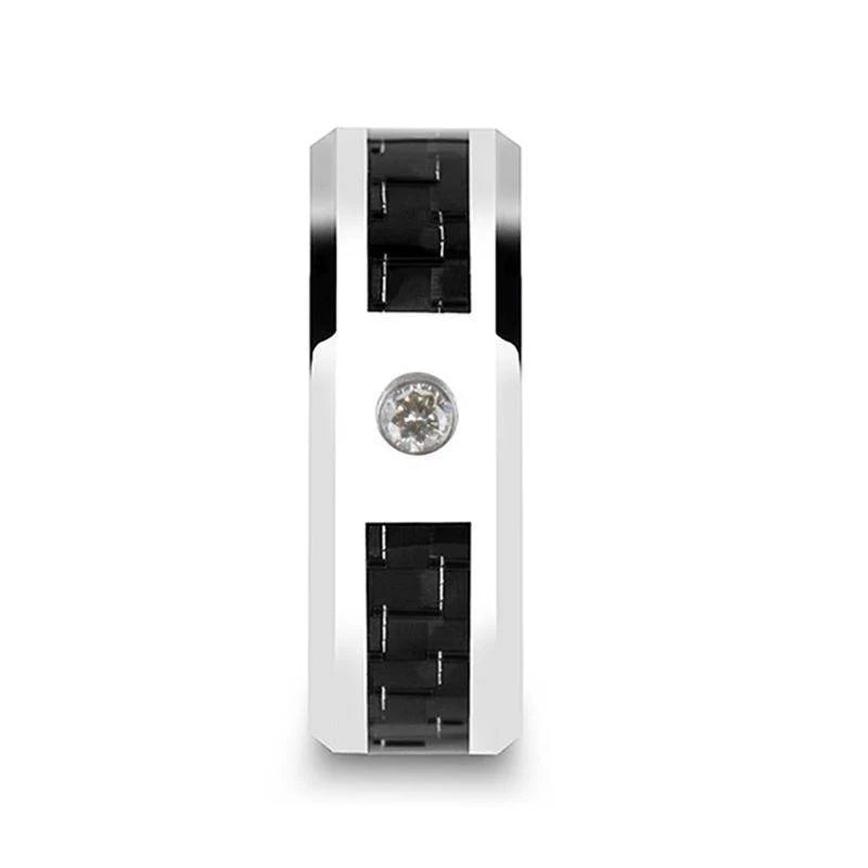 8mm Tungsten Blk Carbon Fiber and White Dia - CAYMAN