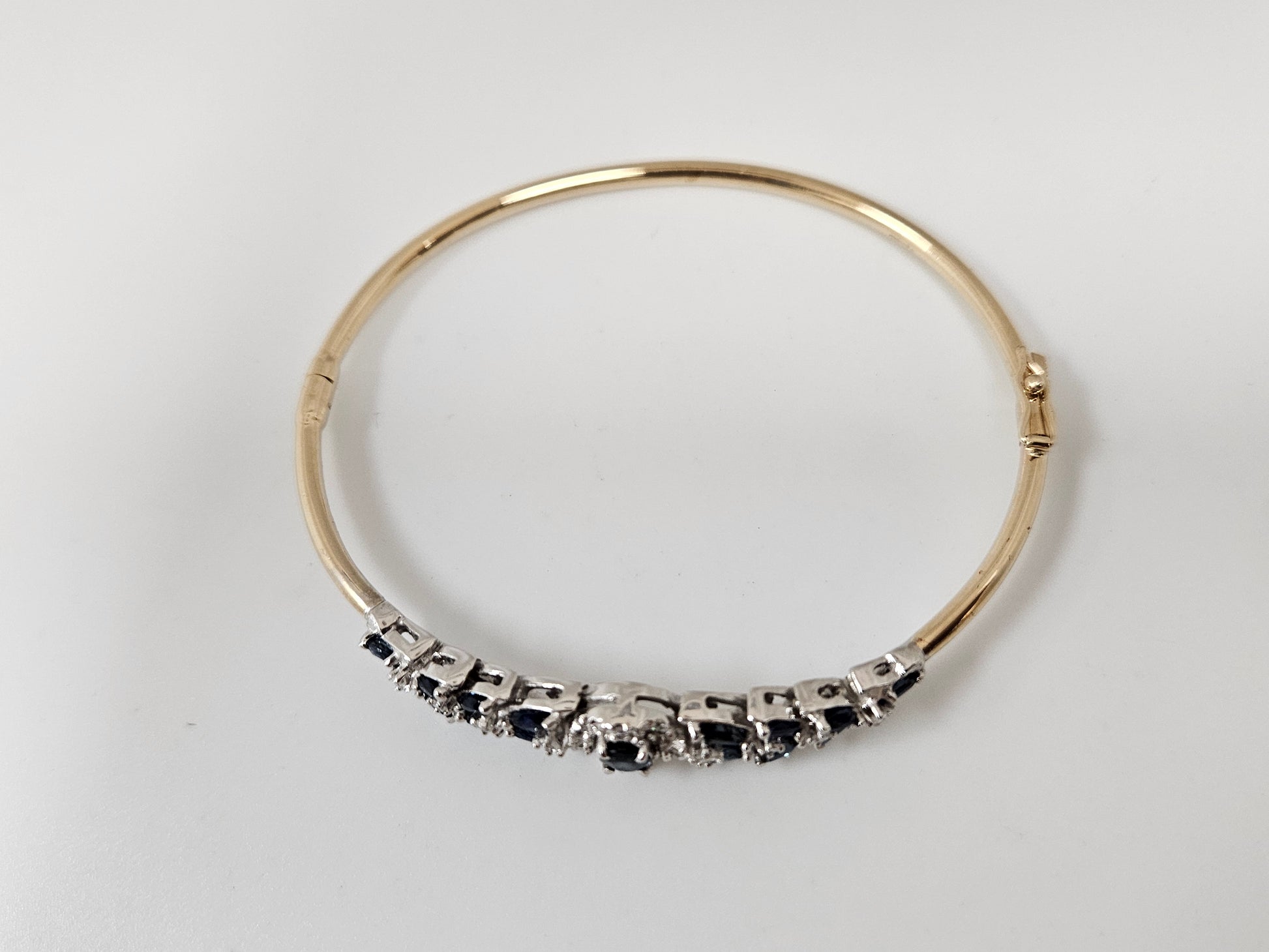 Bangle Brac 14K TwoTone 1.25ct Saph .25cttw Dia 8g