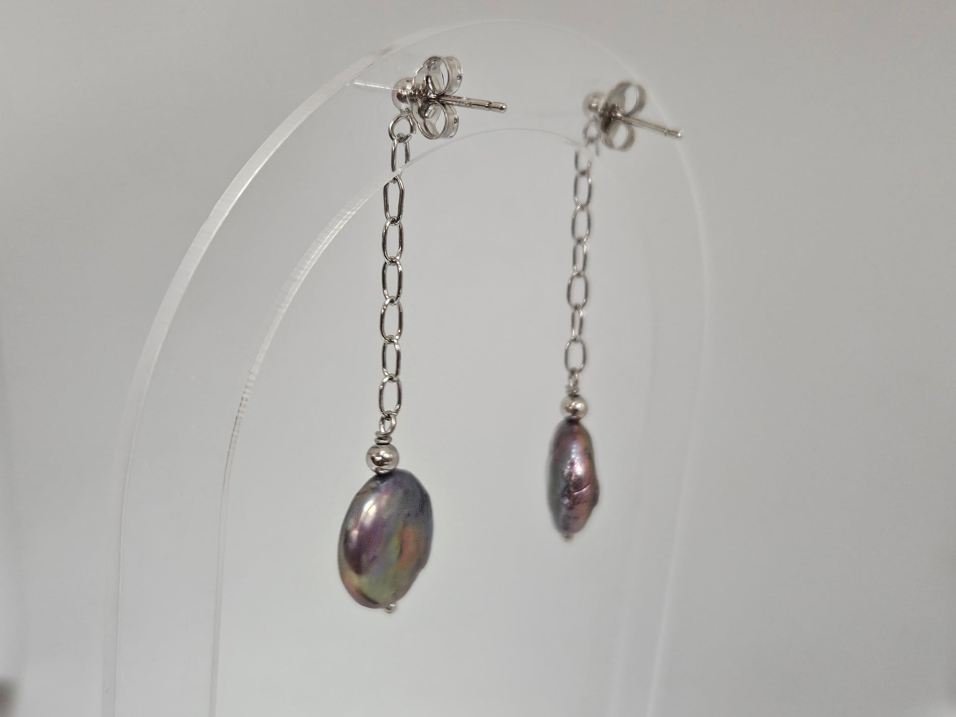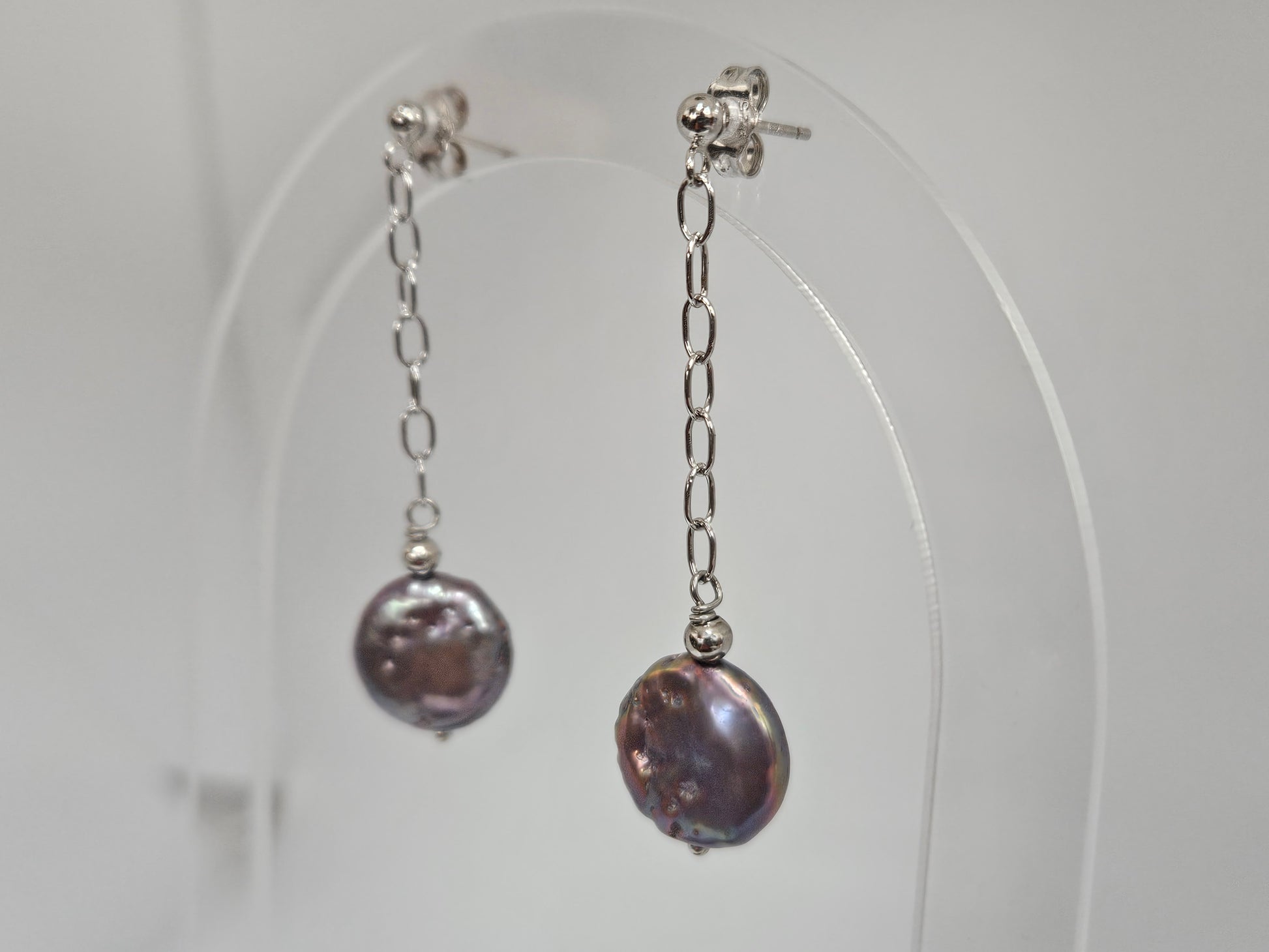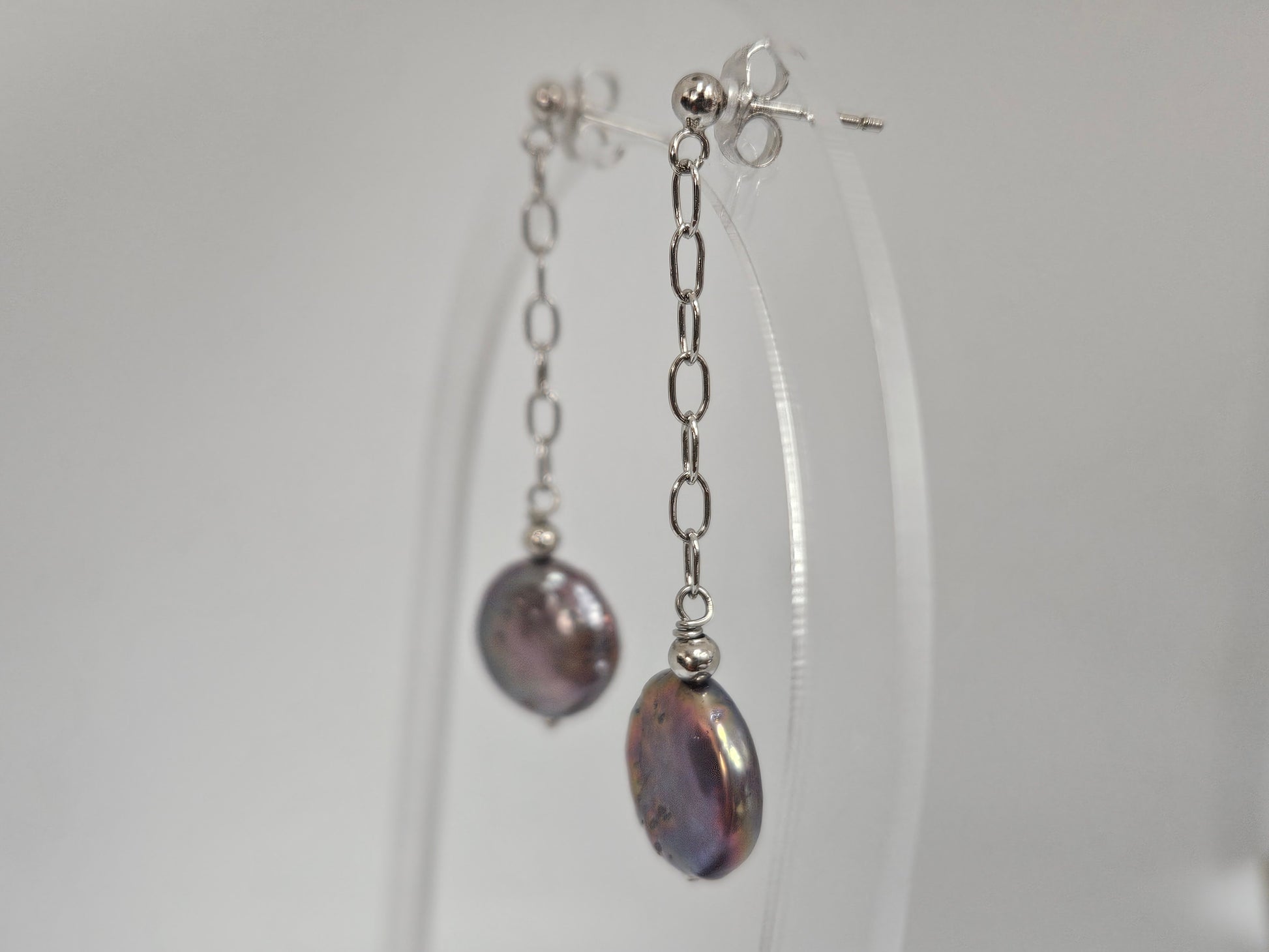 Black Coin Pearl Drop Earrings SS Post Dangle