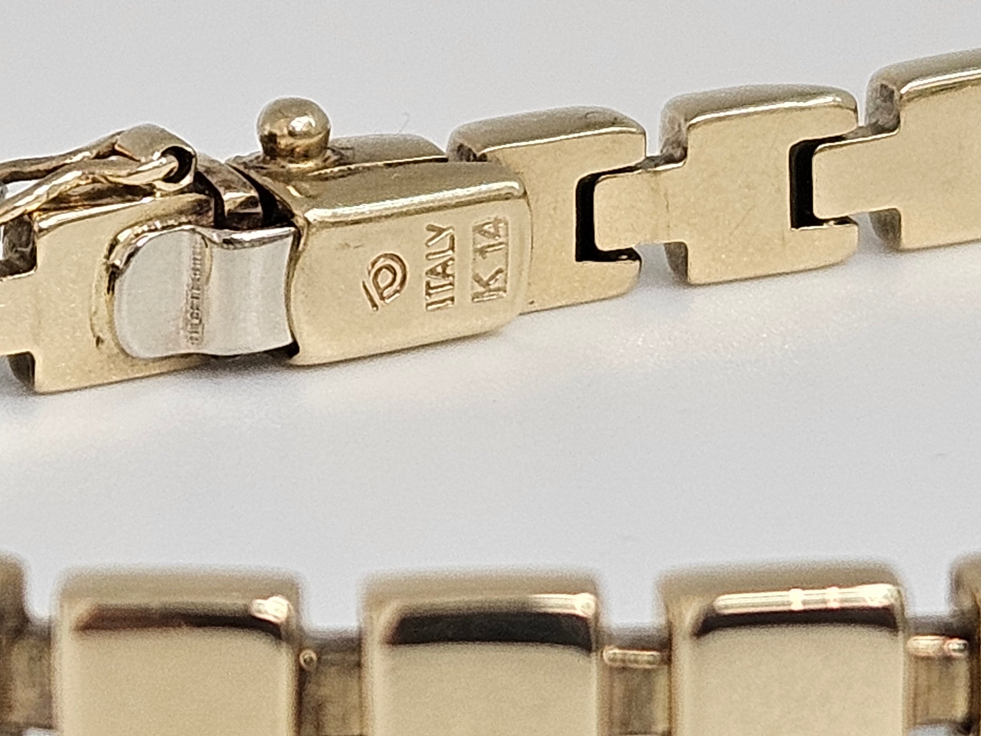 This 8" Box Bracelet is made of 14K yellow gold and has a weight of 10.69 grams. Perfect for adding a touch of elegance to any outfit. Crafted with precision and quality materials, this bracelet is a timeless piece that will make a statement.