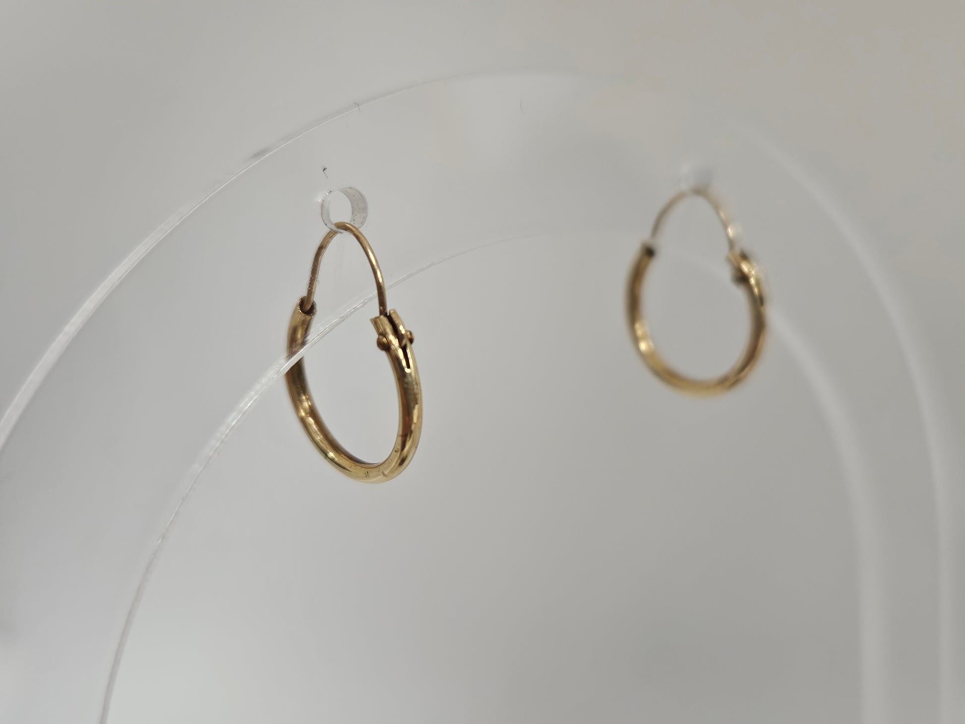 Crafted with 14KT yellow gold, these child hoops are a timeless addition to your little one's jewelry collection. The durable yet delicate design adds a touch of elegance to any outfit, making them the perfect accessory for any occasion. Give the gift of style and quality with these stunning child hoops.