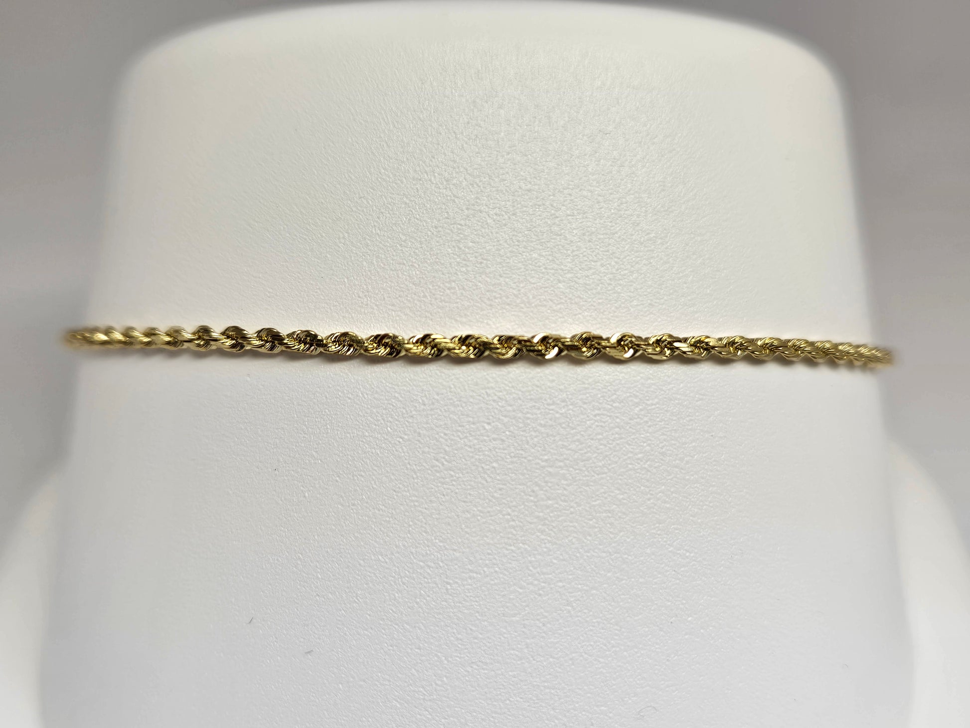 This Diamond Cut Rope Bracelet is expertly crafted with 14KTYG and features a 1.2mm solid design, weighing 1.7 grams. With its intricate diamond cut detail, this bracelet is both durable and stylish, making it the perfect accessory for any occasion. Elevate your style with this timeless piece.