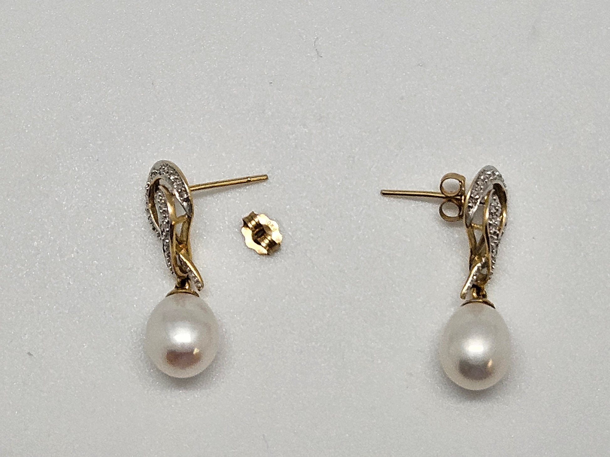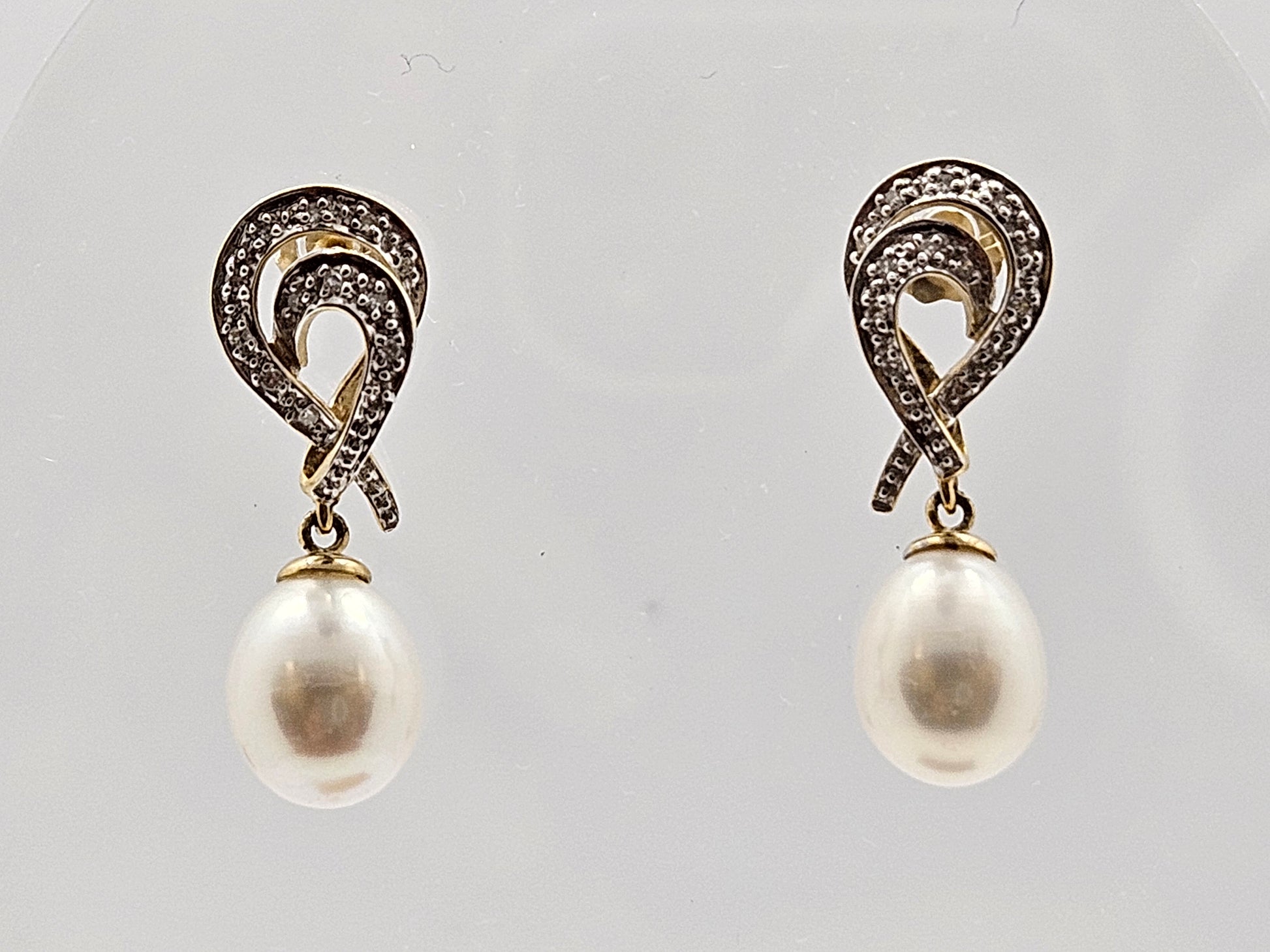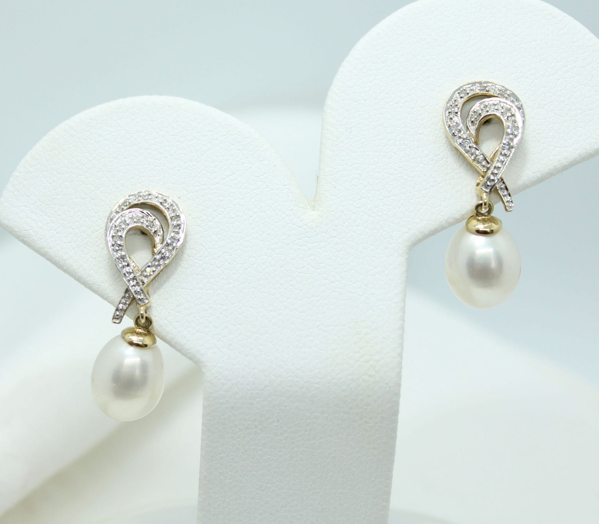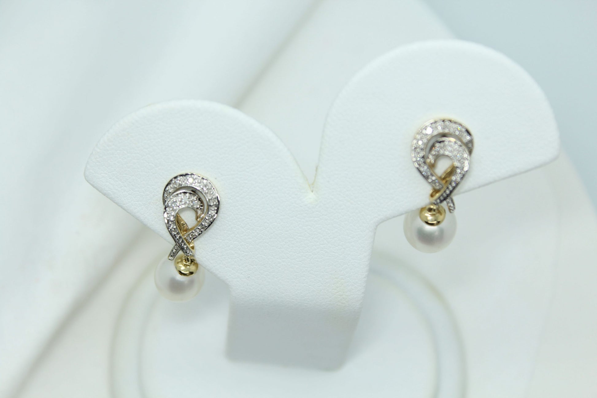 Enhance your jewelry collection with our luxurious 14KT yellow gold pearl and diamond swirl earrings. With the perfect combination of classic pearls and sparkling diamonds, These earrings add elegance and sophistication to any outfit. Expertly crafted, These earrings are sure to be a timeless addition to your wardrobe.