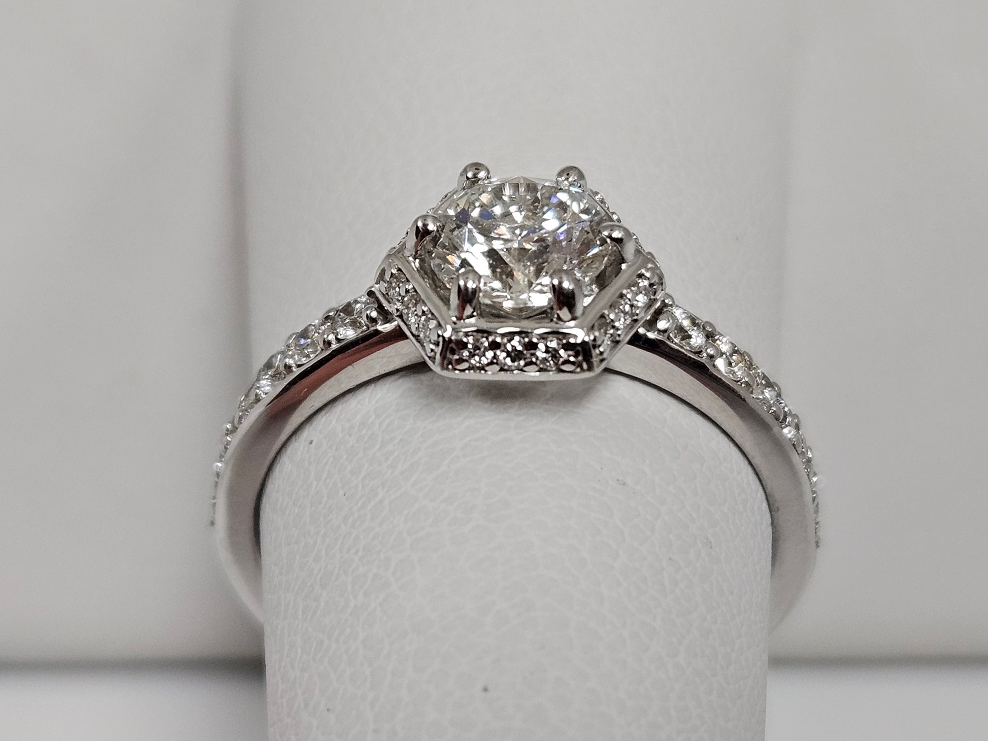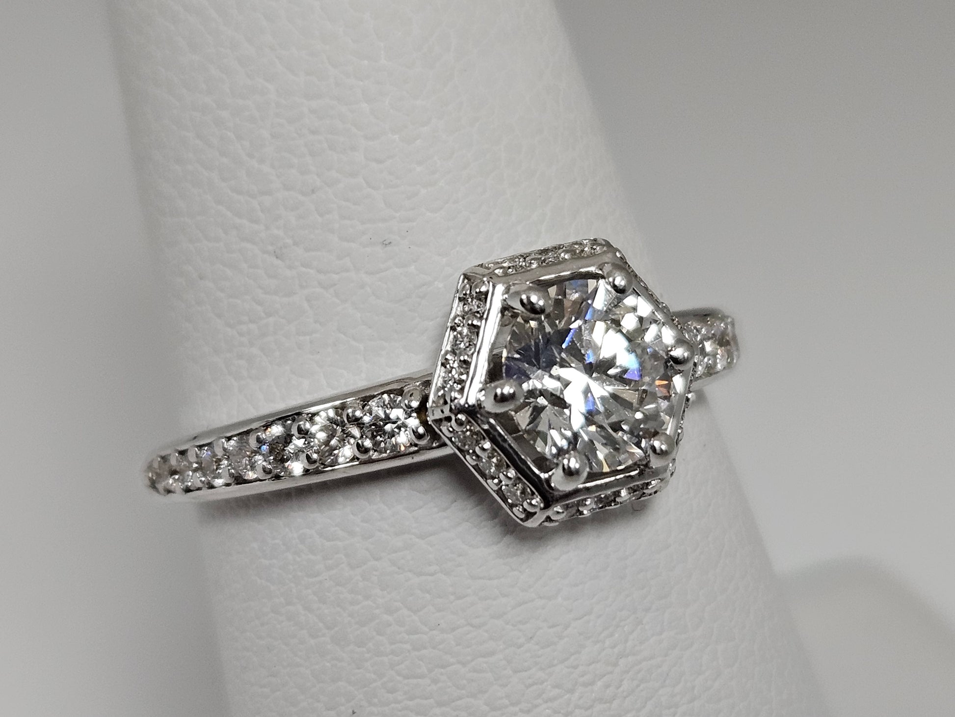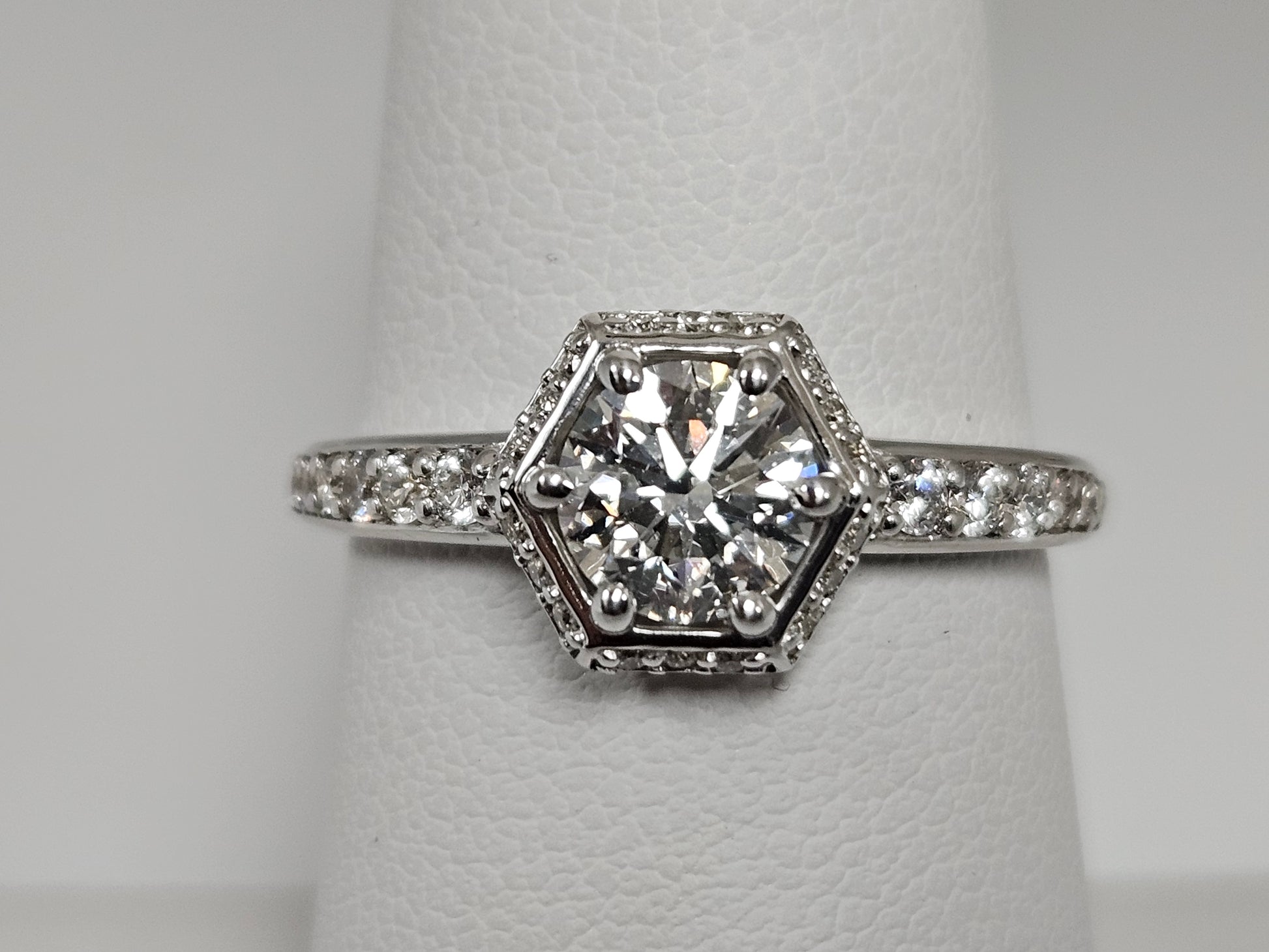 Hexagon Halo DIA Ring Ctr.75 Rd 1.25cttw 14KWG