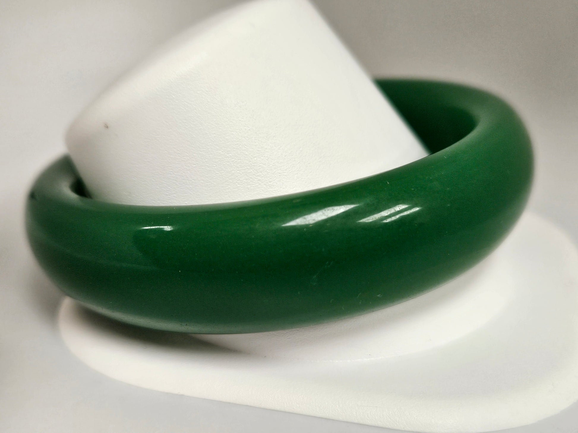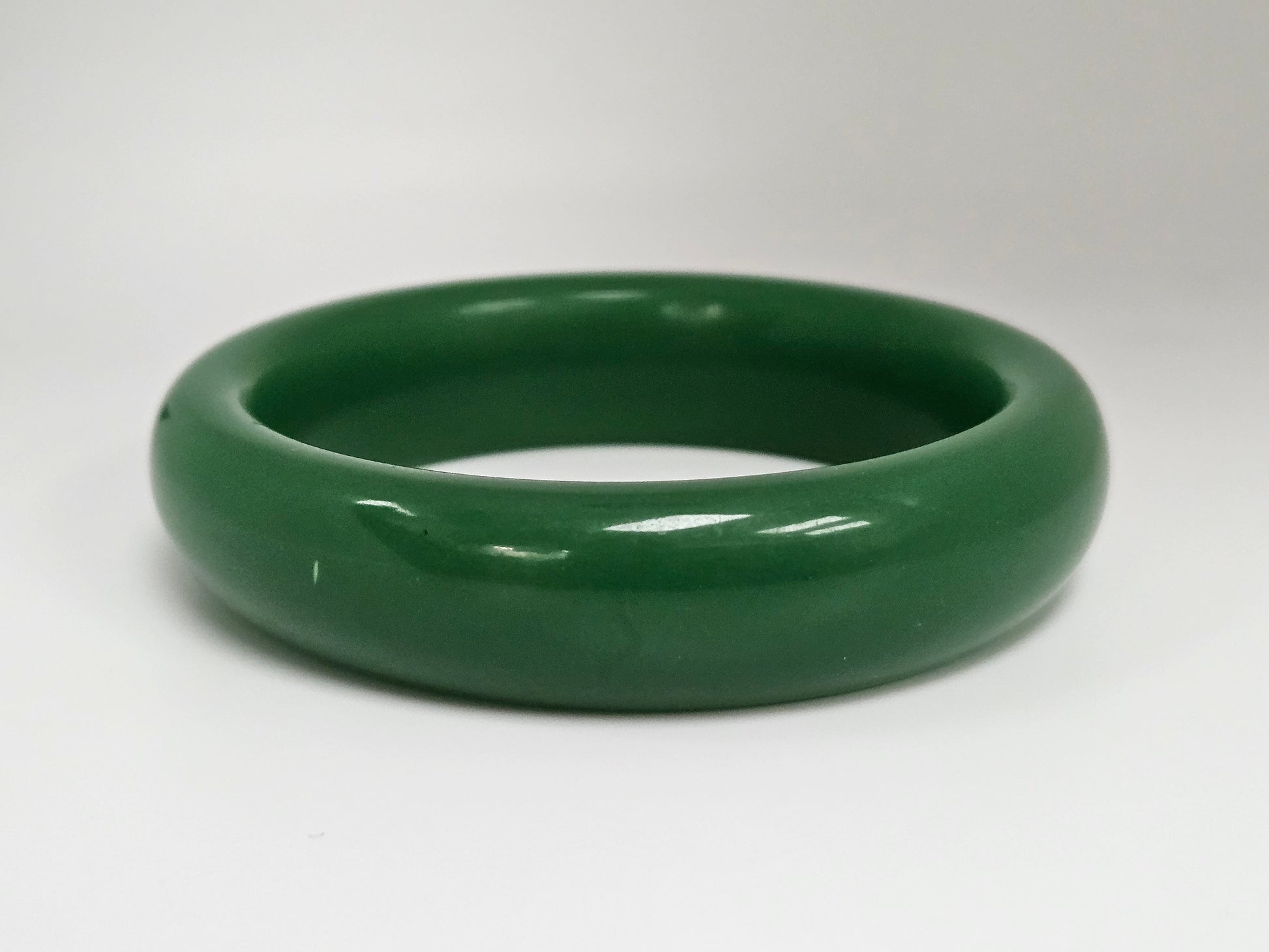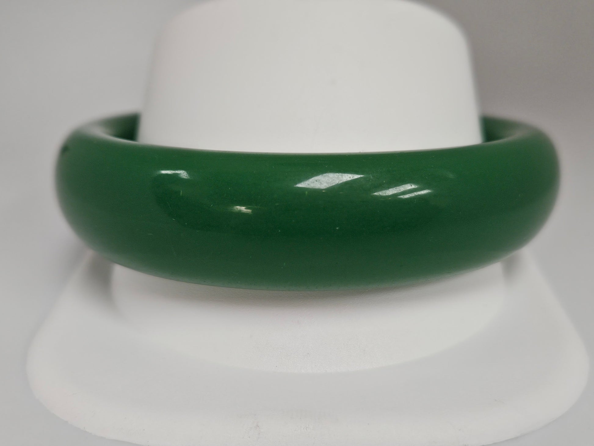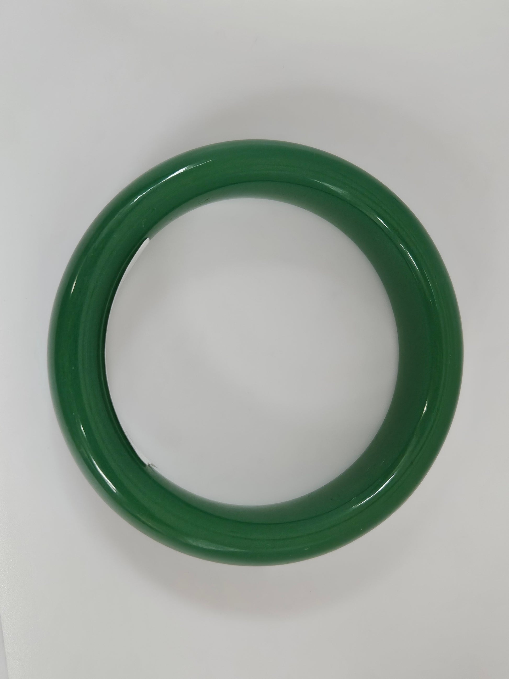This bangle showcases a refined blend of natural elegance and expert craftsmanship. Its smooth, dyed jadite surface offers a vibrant yet subtle color that complements any ensemble. Lightweight and durable, this bangle provides comfortable all-day wear while adding a sophisticated touch to your jewelry collection. Ideal for those who appreciate timeless style with a modern twist.