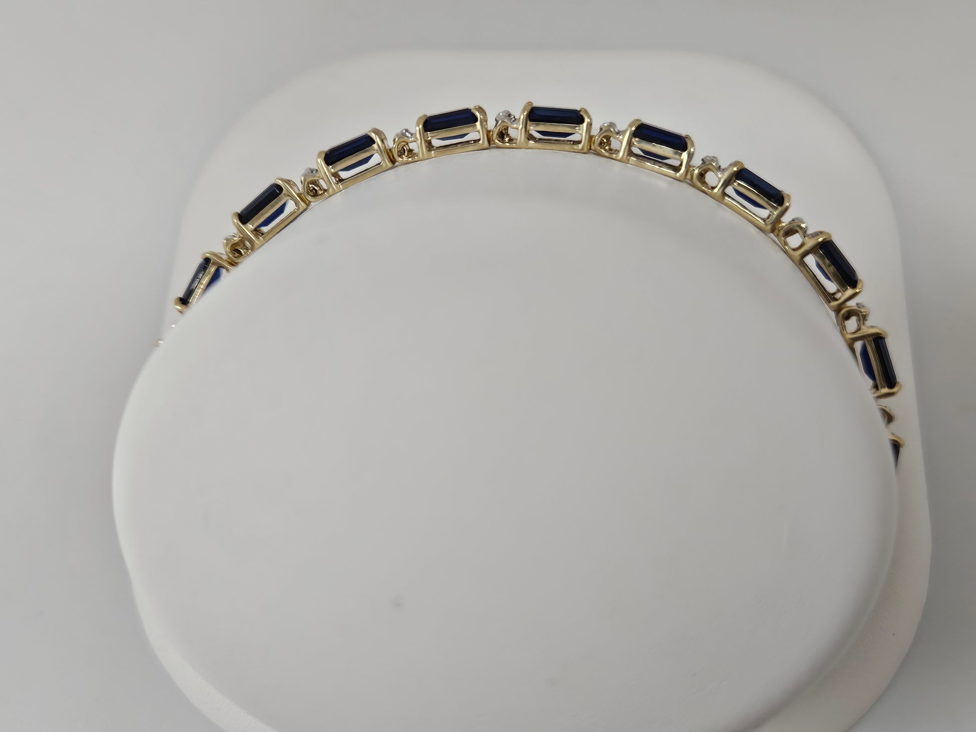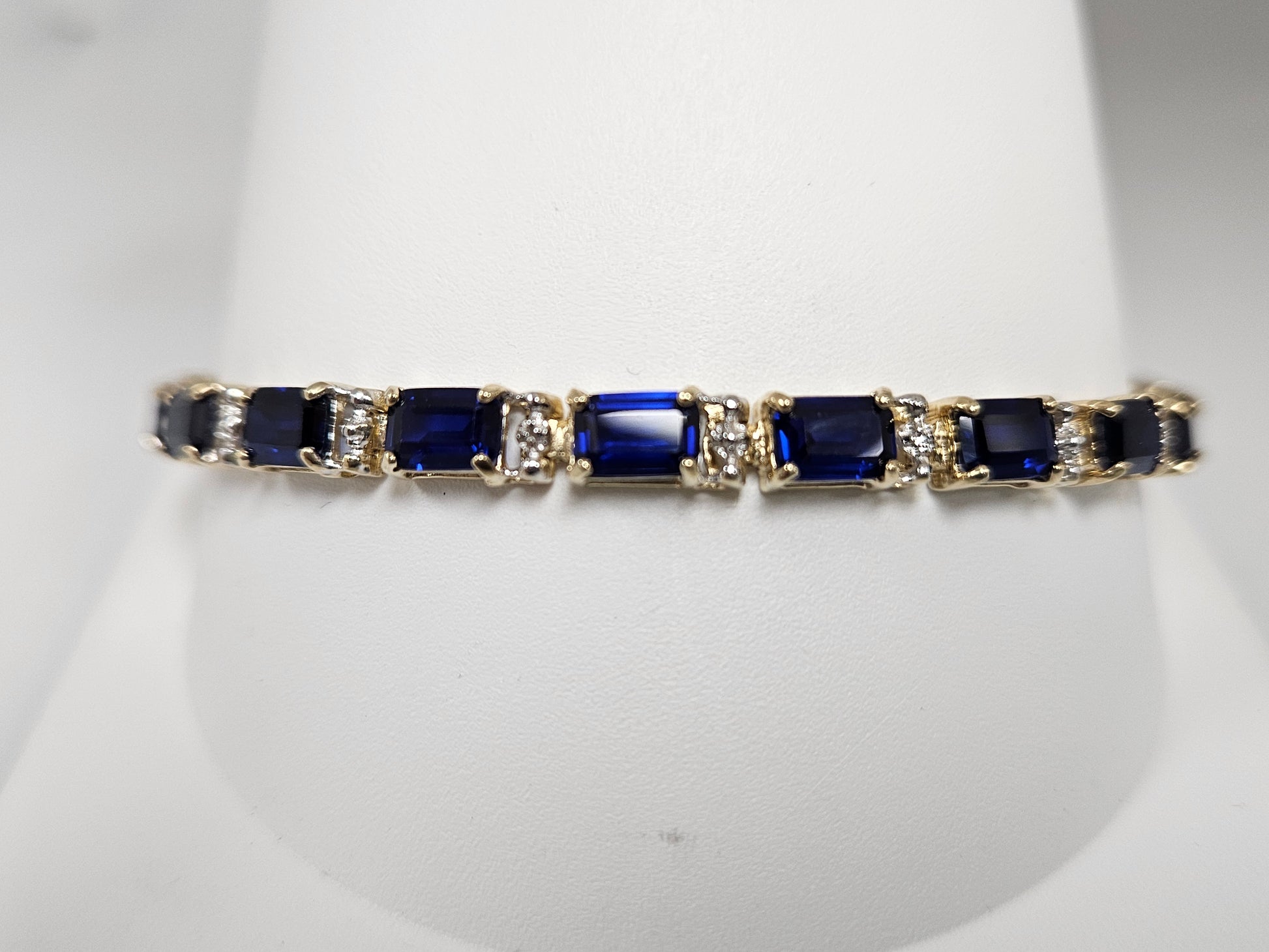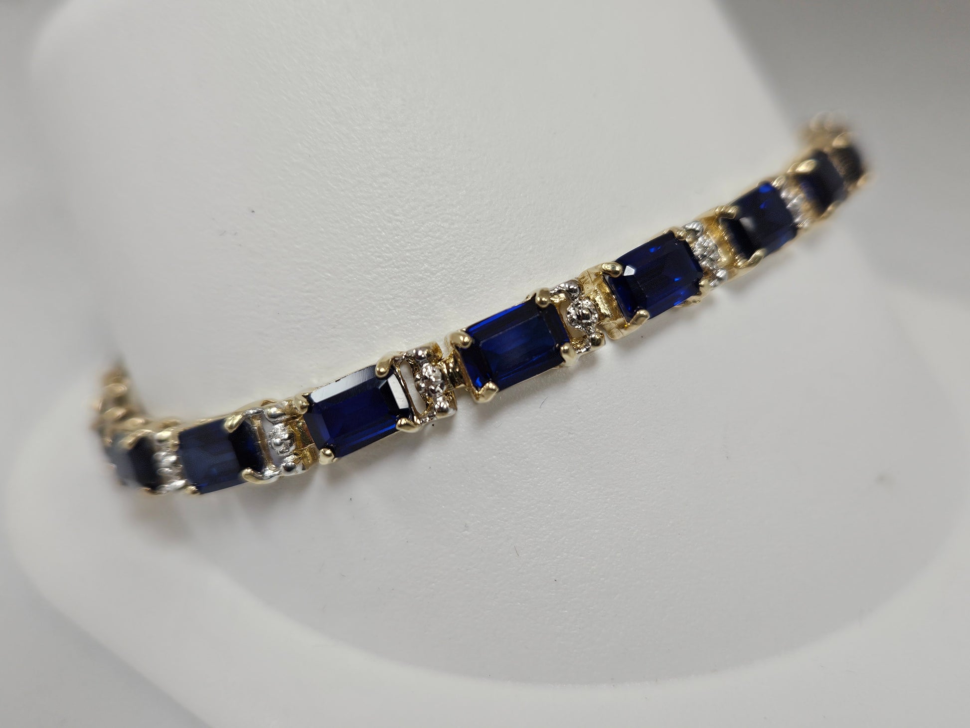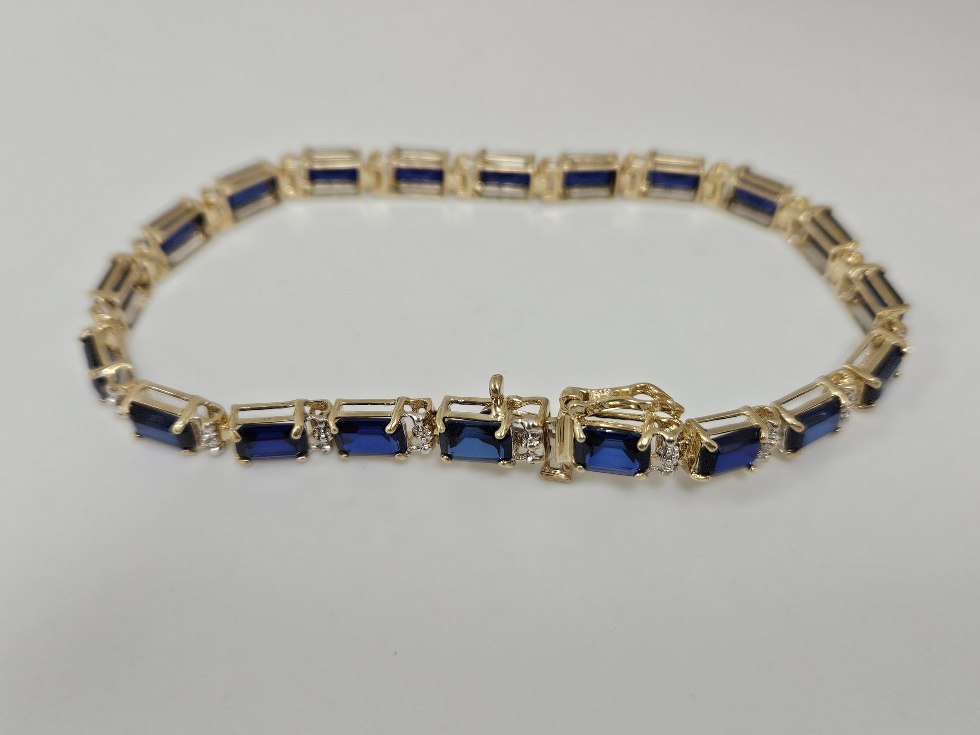 Elevate your style with this stunning Sapphire bracelet. The elegant design features a sparkling .05 carat diamond set in 10K yellow gold, making it a timeless and luxurious addition to any jewelry collection. Show off your sophisticated taste with this top-quality piece.