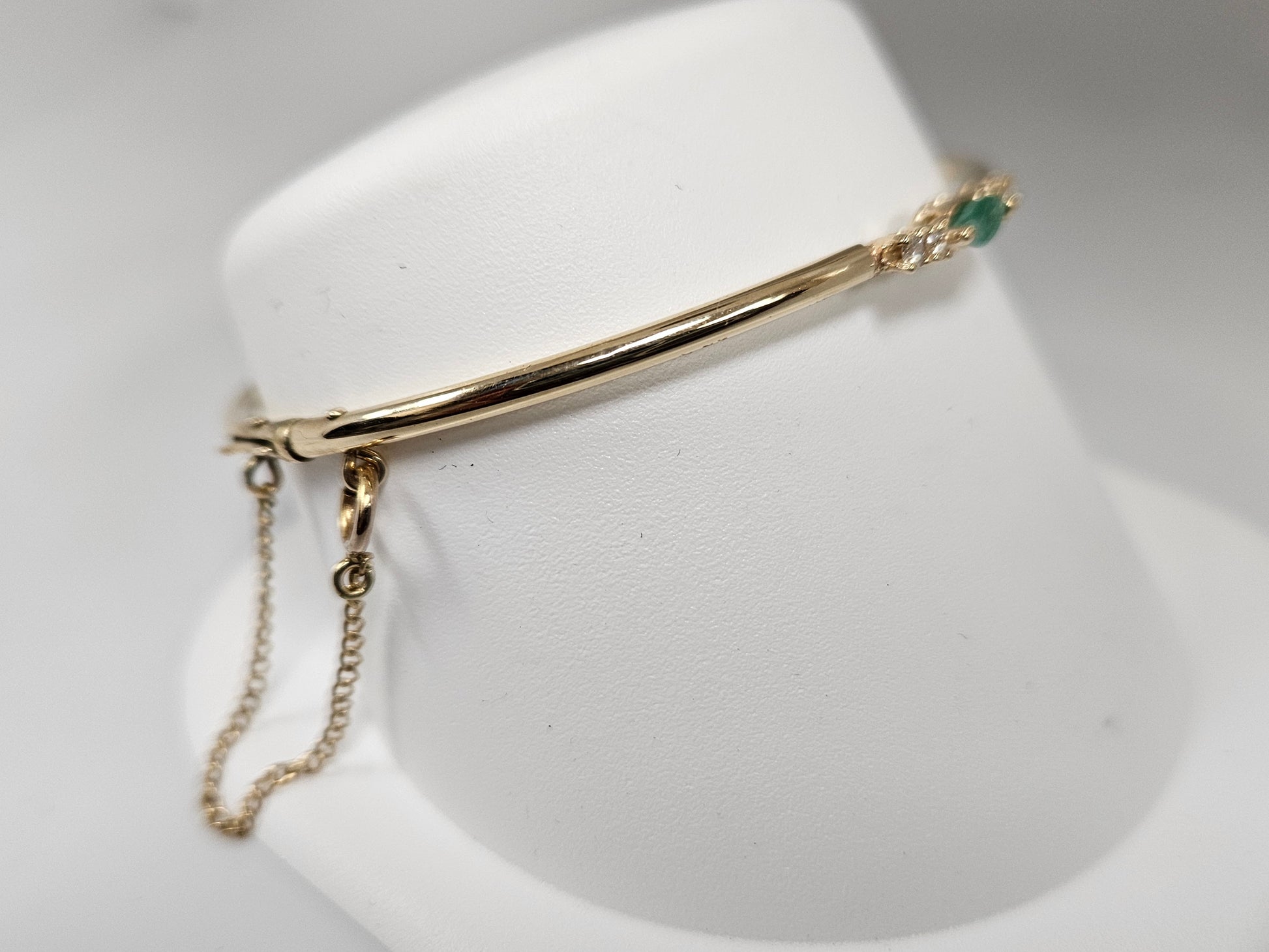 MQ Em/Dia Bangle Brac 14KYG .35ct Em .12cttw Dia 4.5g