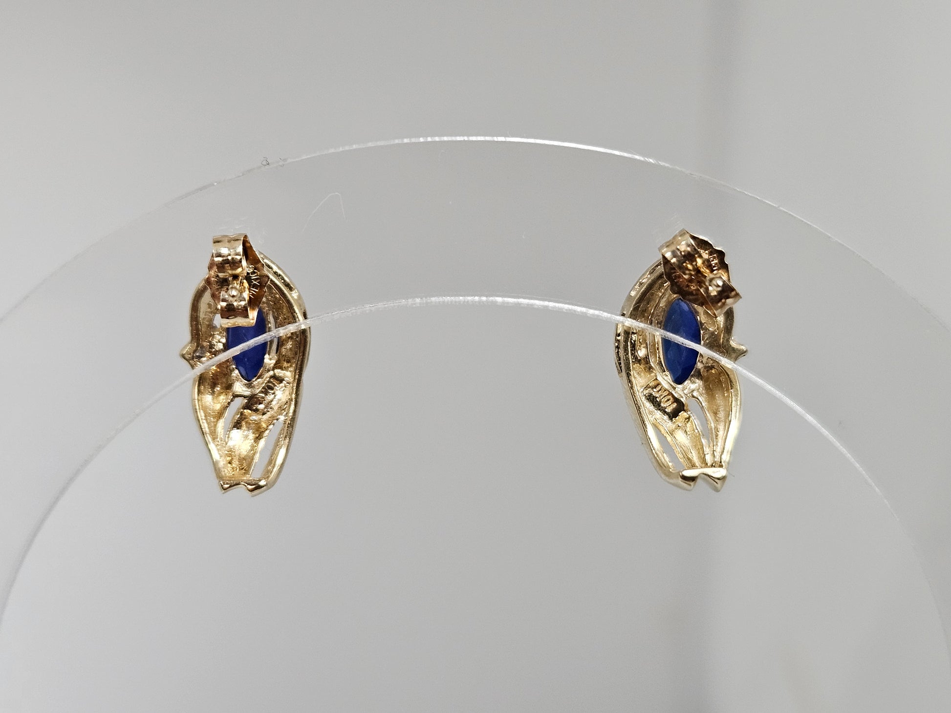 Upgrade your earring collection with our marquee lab sapphire half earrings. These stunning 10kt yellow gold earrings feature marquise-shaped lab sapphire stones, adding a touch of elegance and sophistication to any outfit. Perfect for any occasion, these earrings are sure to become a staple in your jewelry collection.
