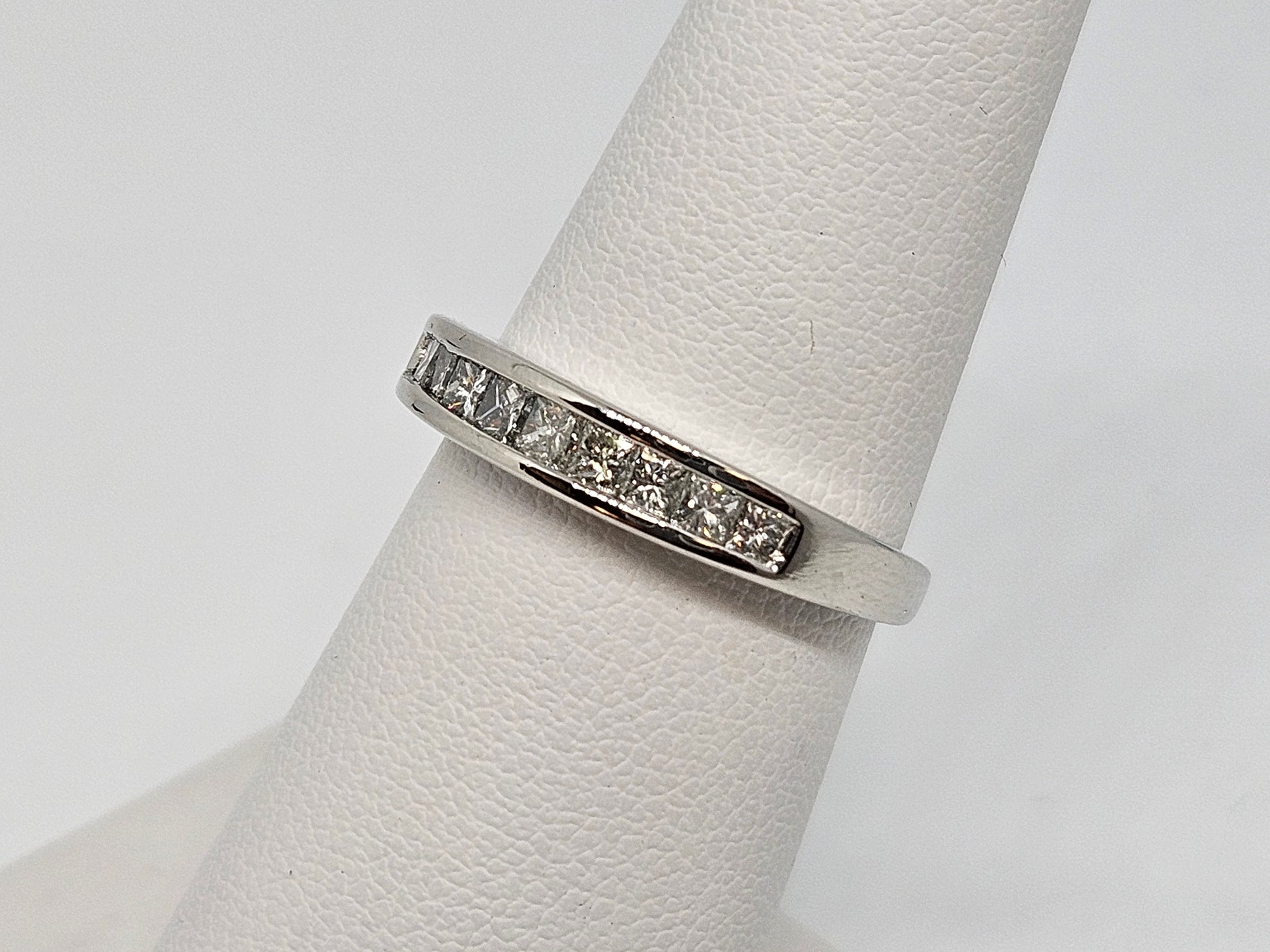 This channel-set band boasts a stunning .50cttw of natural, I/SI diamonds in high-quality platinum. Expertly crafted, this band offers both elegance and strength, making it the perfect symbol of your enduring commitment.