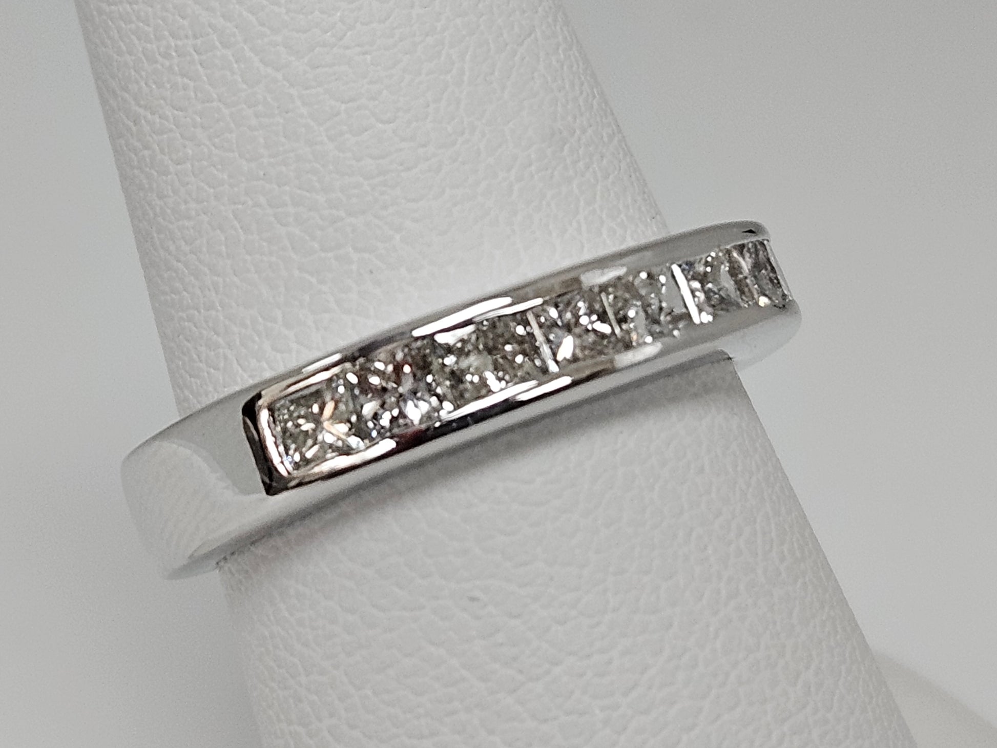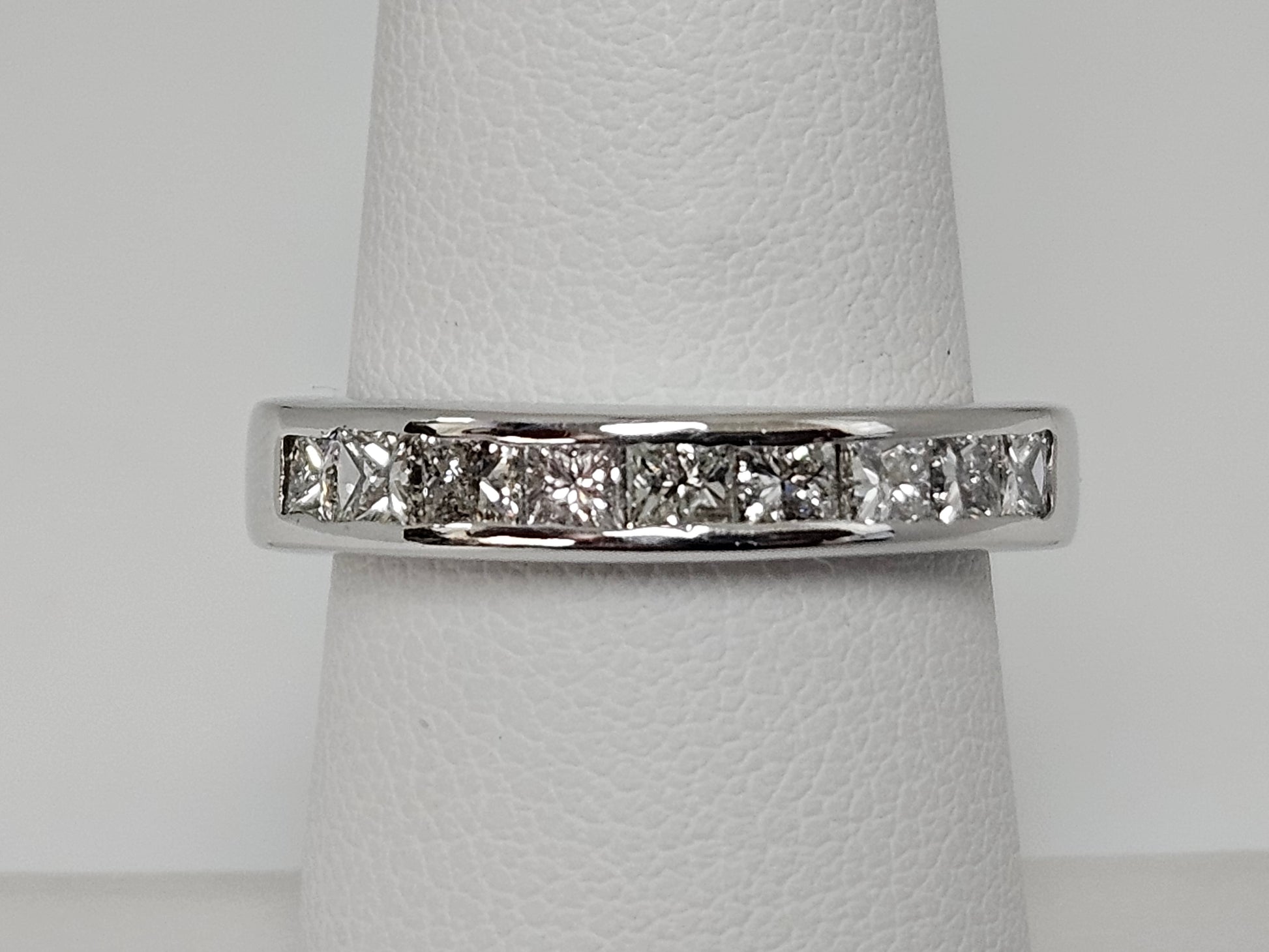 This elegant Princess Cut Band features a Channel Set with 9 stone and a total weight of 1.30CTTW. Made with 18 KTWG, it boasts a timeless design and superior craftsmanship. Perfect for any occasion, this ring will add a touch of luxury to any outfit.