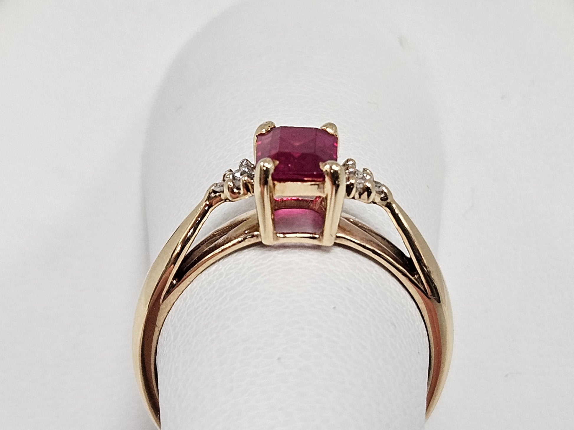 EM Ruby 1ct & Dia Ring .03cttw Dia 10KYG 1.8g Sz6.75