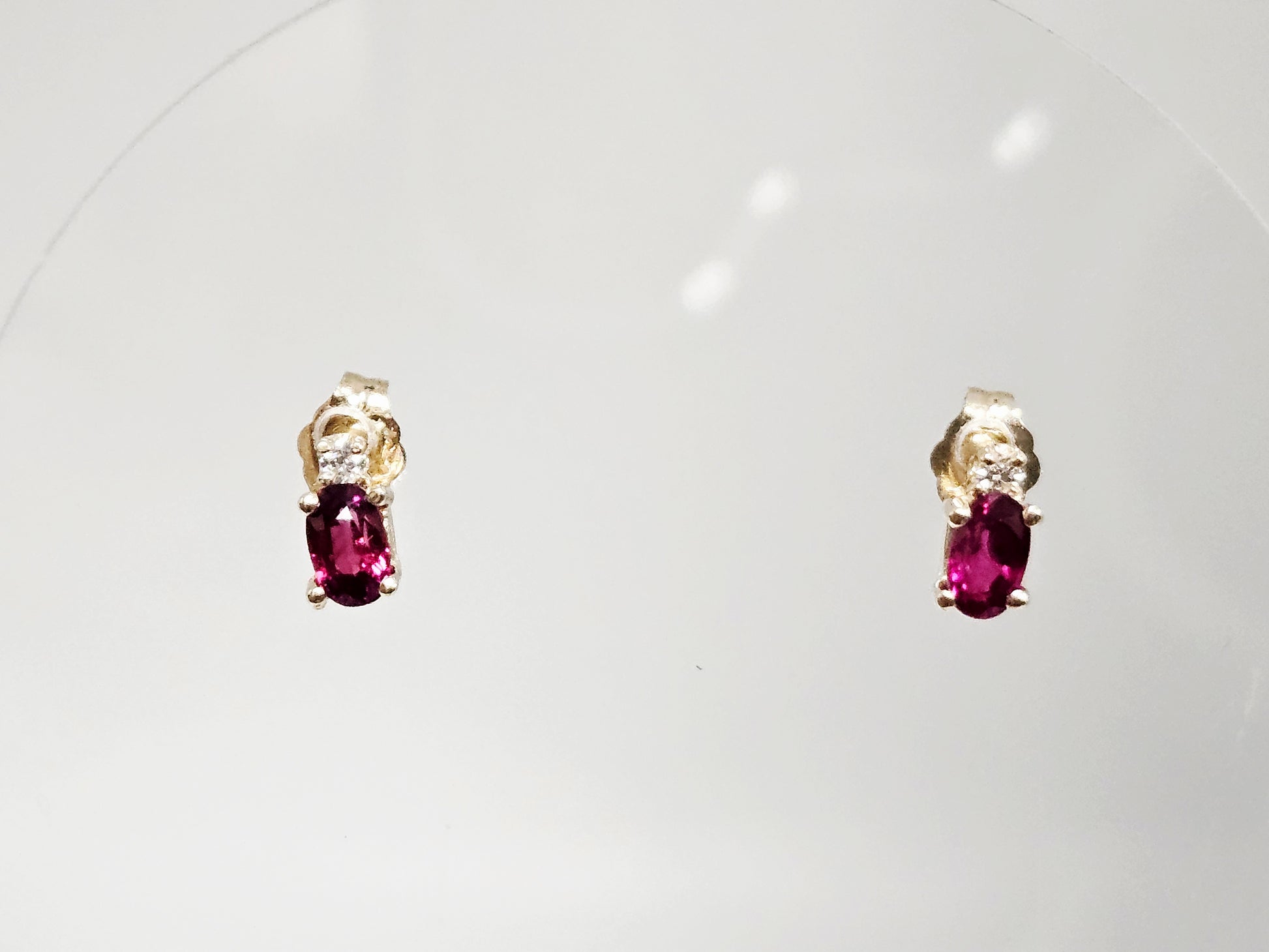Ruby/Dia studs .66ct Ruby .06cttw Dia 14KYG