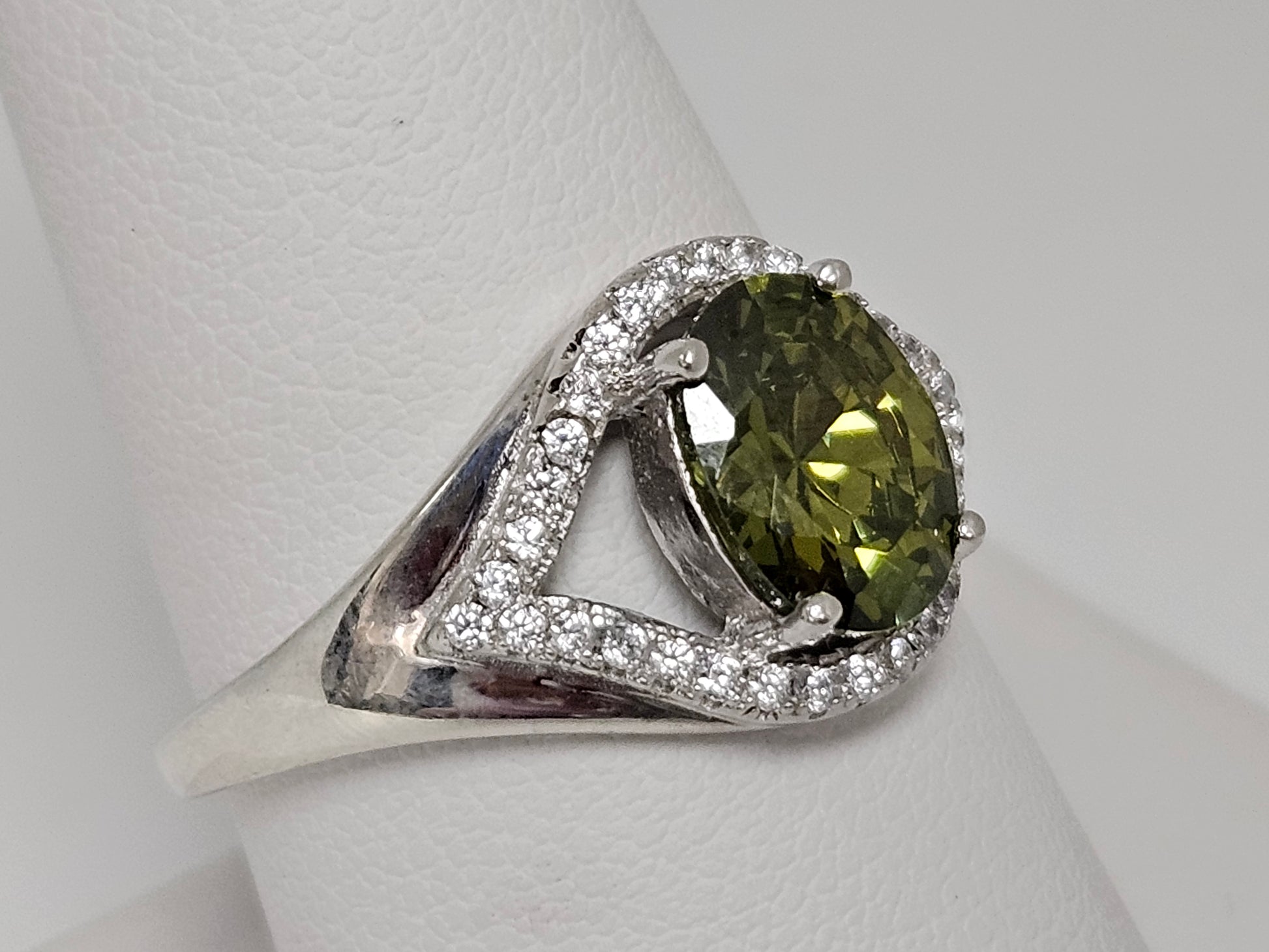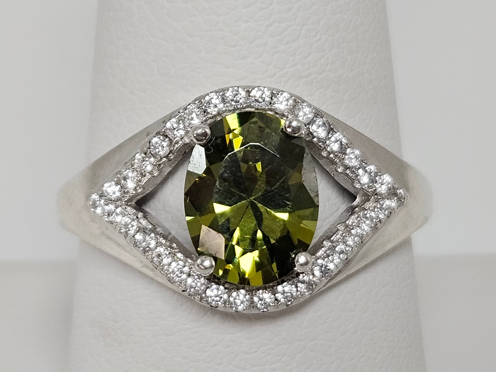 SS CZ OVAL GREEN STONE Sz8.5