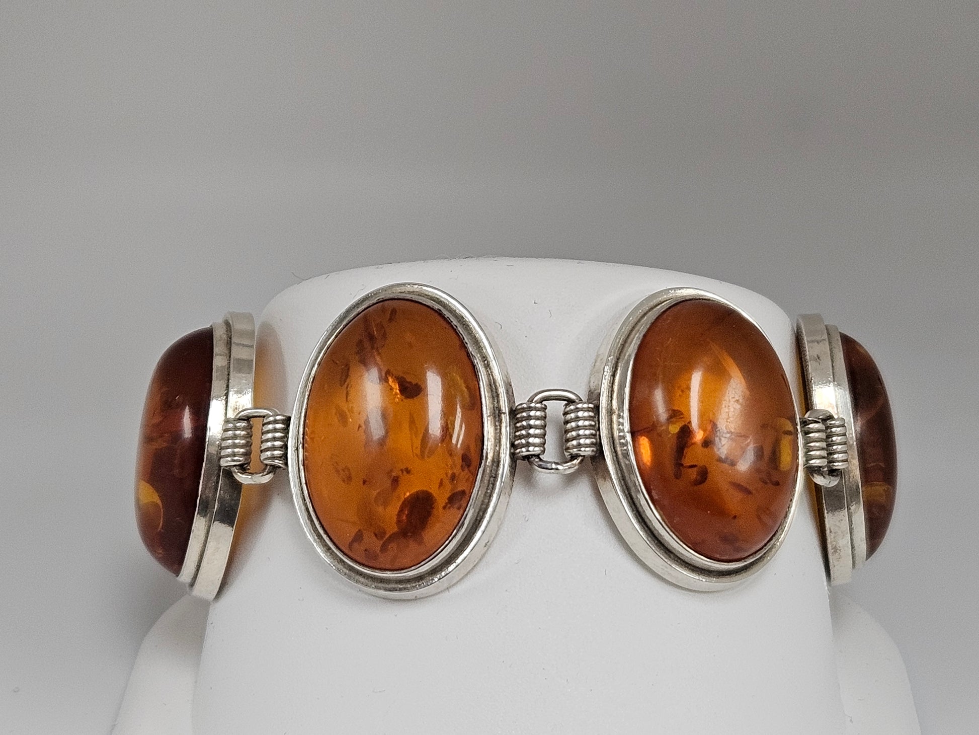 Expertly crafted from high-quality sterling silver, the Stainless Steel Amber Bracelet is a stunning addition to any jewelry collection. With its unique large cabochon amber stone, this bracelet is sure to make a statement. Experience the beauty and elegance of this piece, perfect for any occasion.