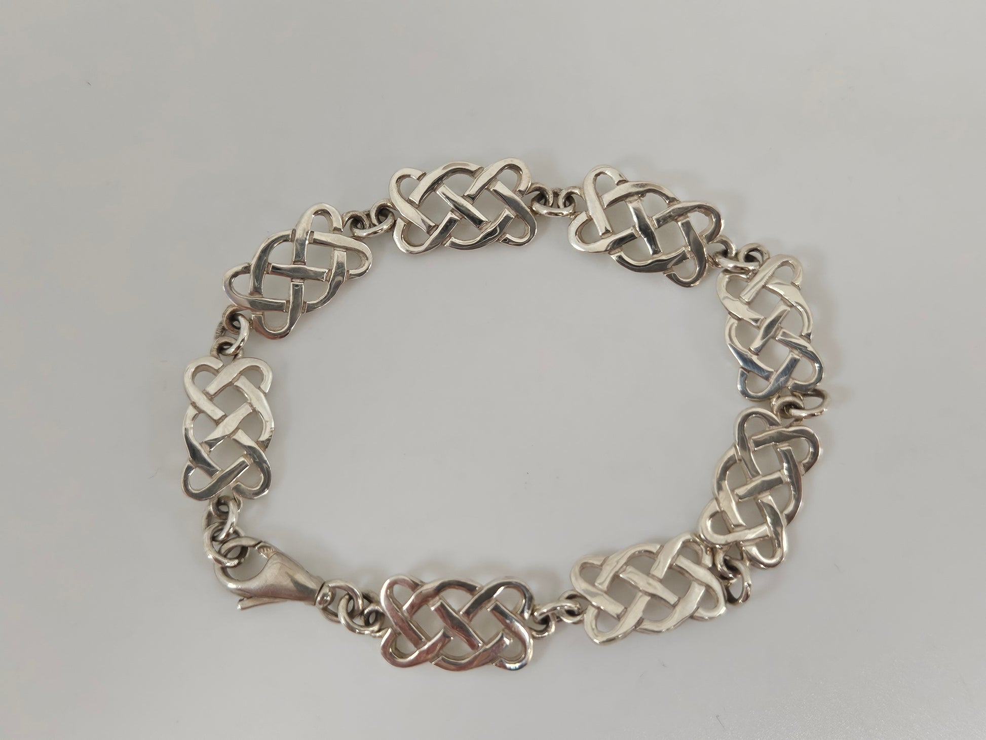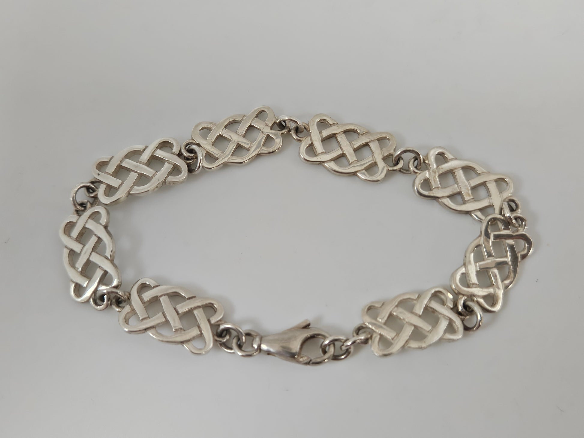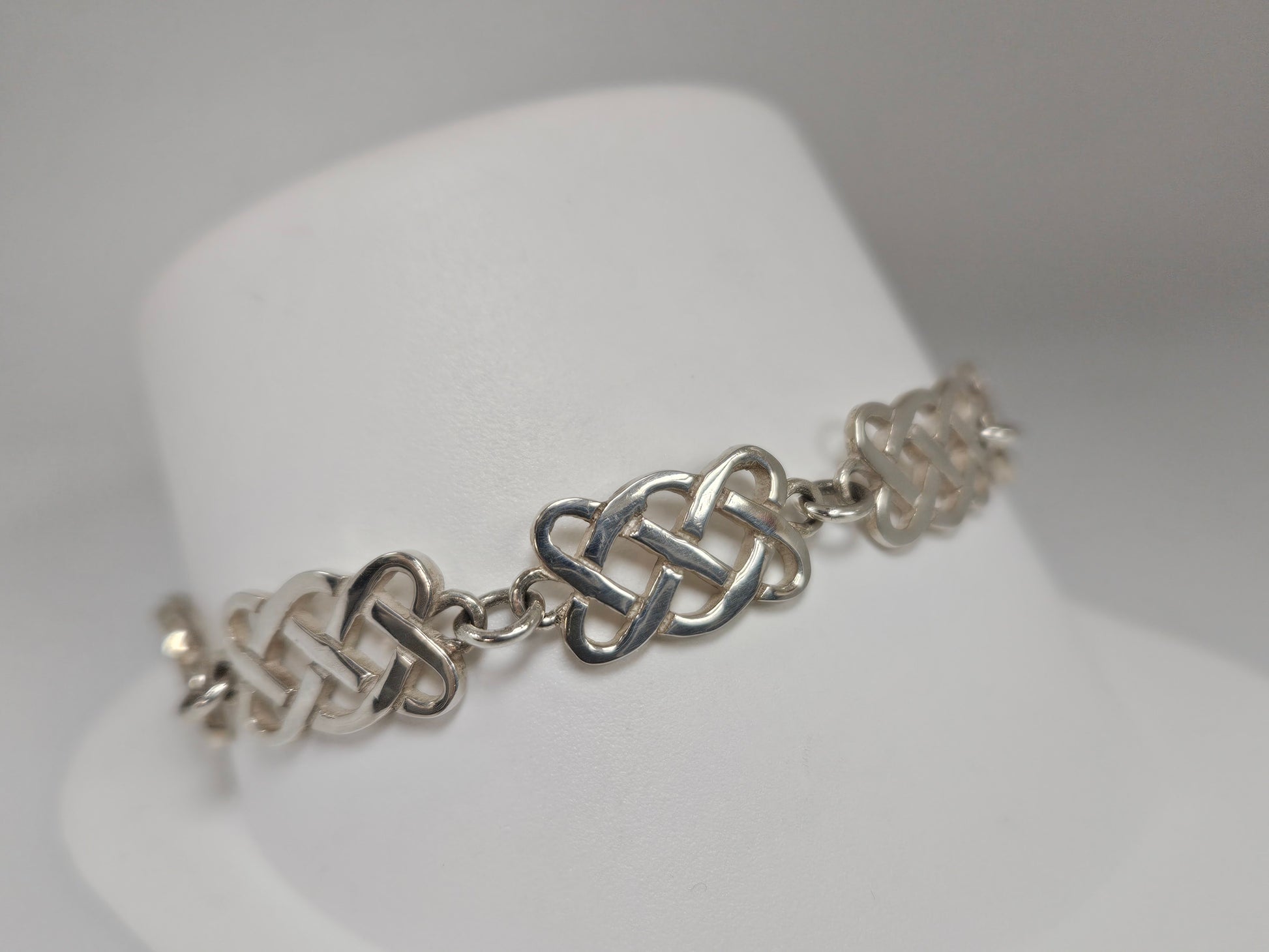 Crafted with sterling silver, this Celtic link bracelet is a stunning piece of jewelry. Its intricate Celtic link design represents strength and unity, making it a meaningful and timeless accessory. Add a touch of elegance to any outfit with this expertly crafted bracelet.