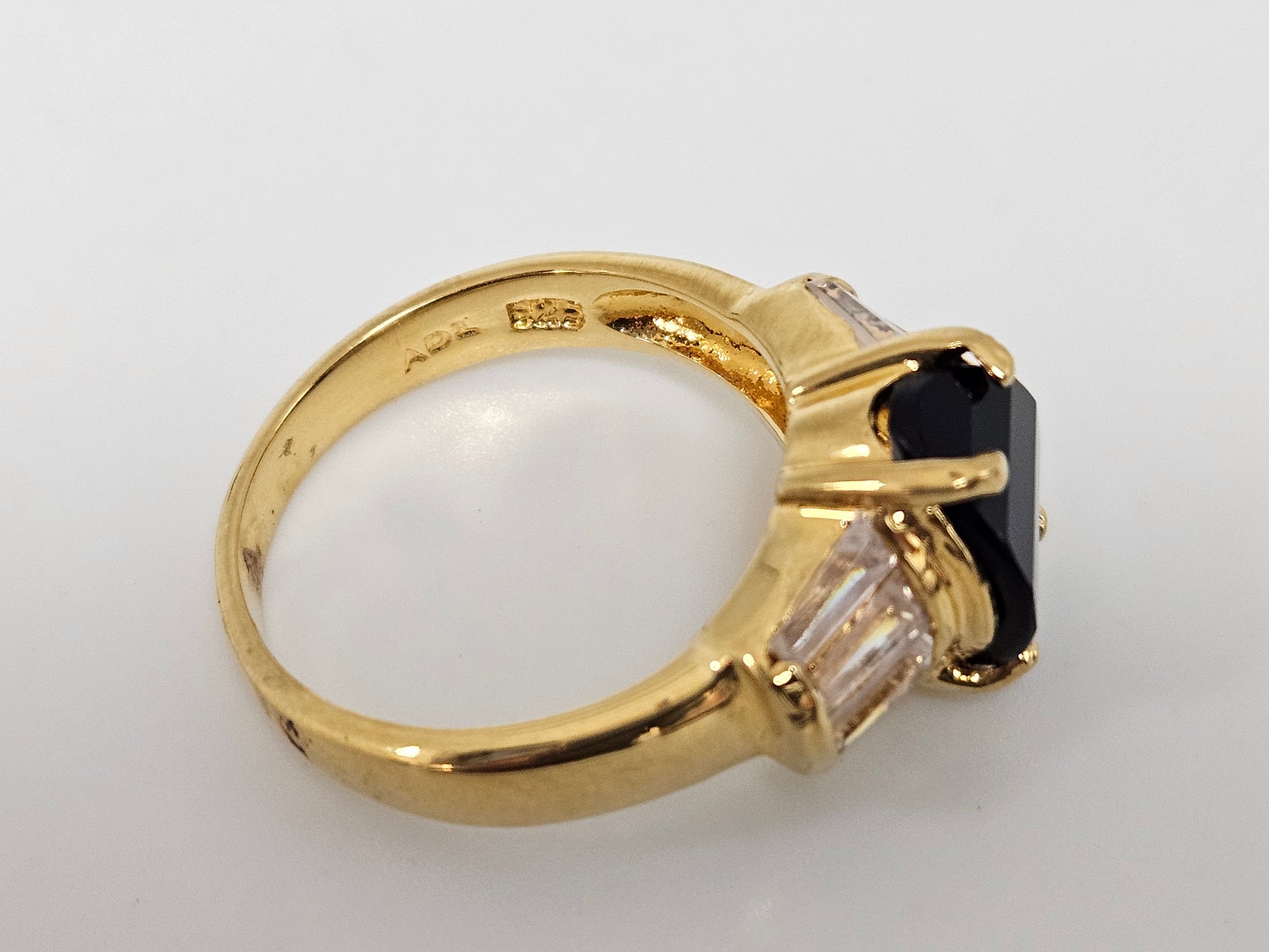 Sterling Silver CZ Gold Tone PURPLE Stone Sz7