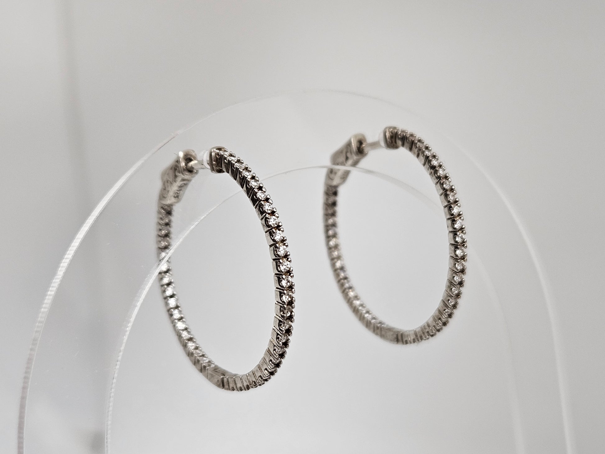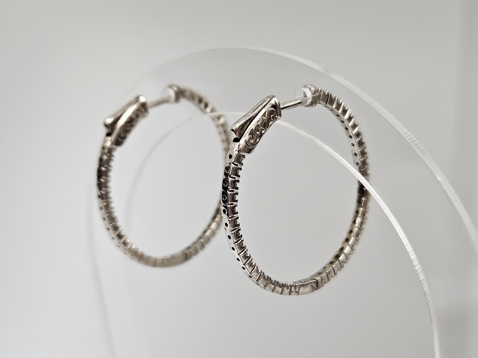 Expertly crafted from sterling silver and adorned with sparkling cubic zirconia stones, these earrings feature a secure rhodium plate hinge lock. Elevate your style with the ultimate combination of elegance and practicality.