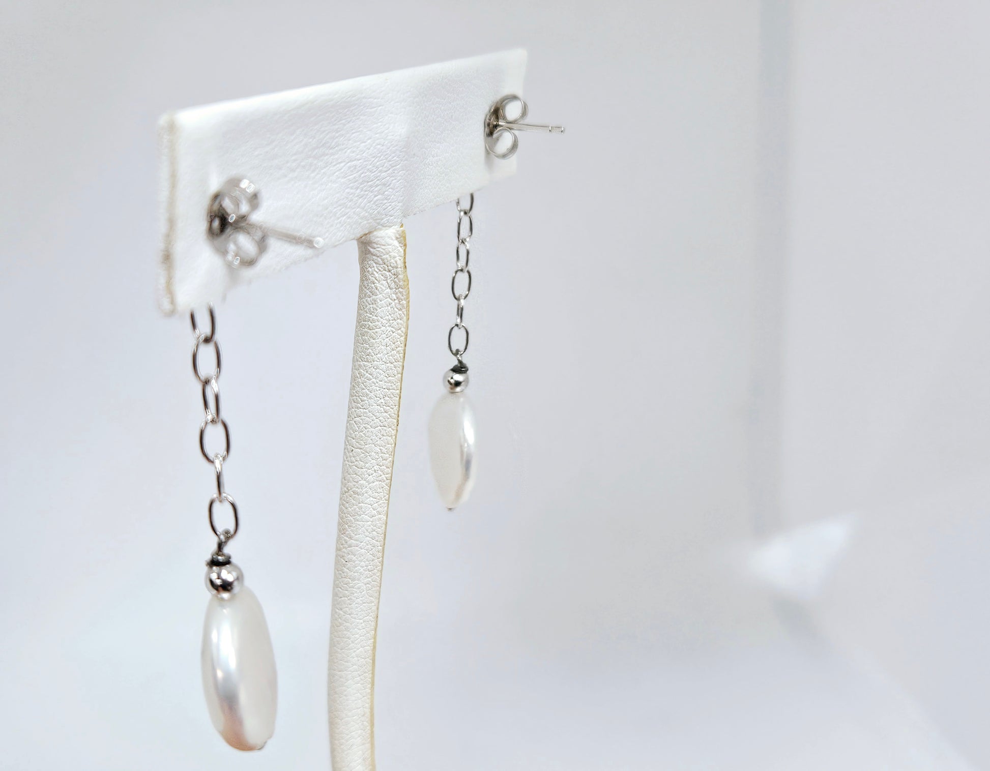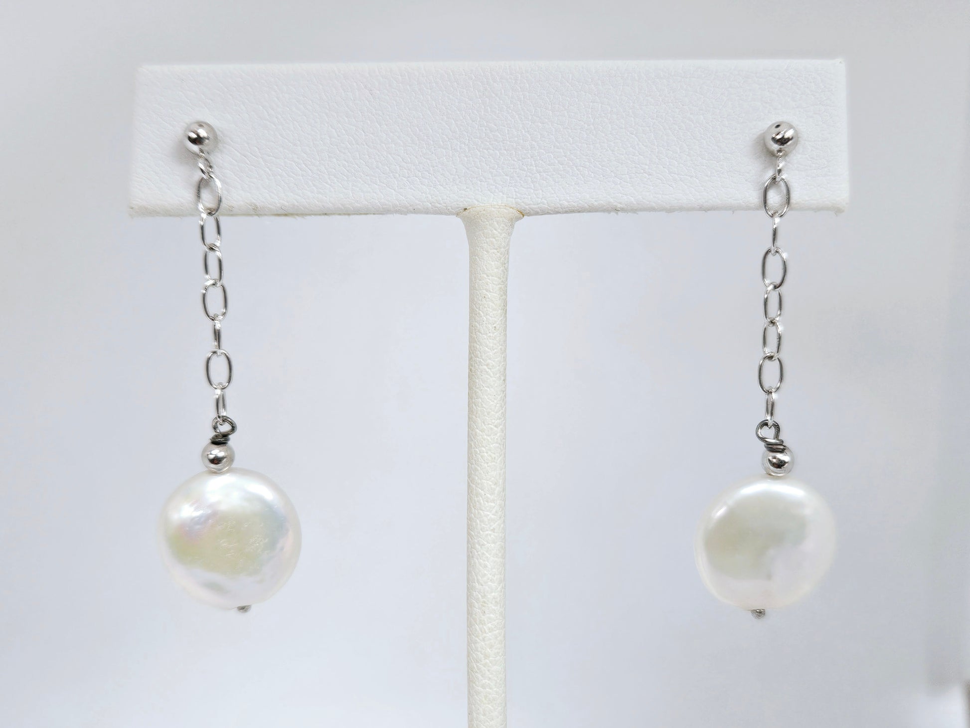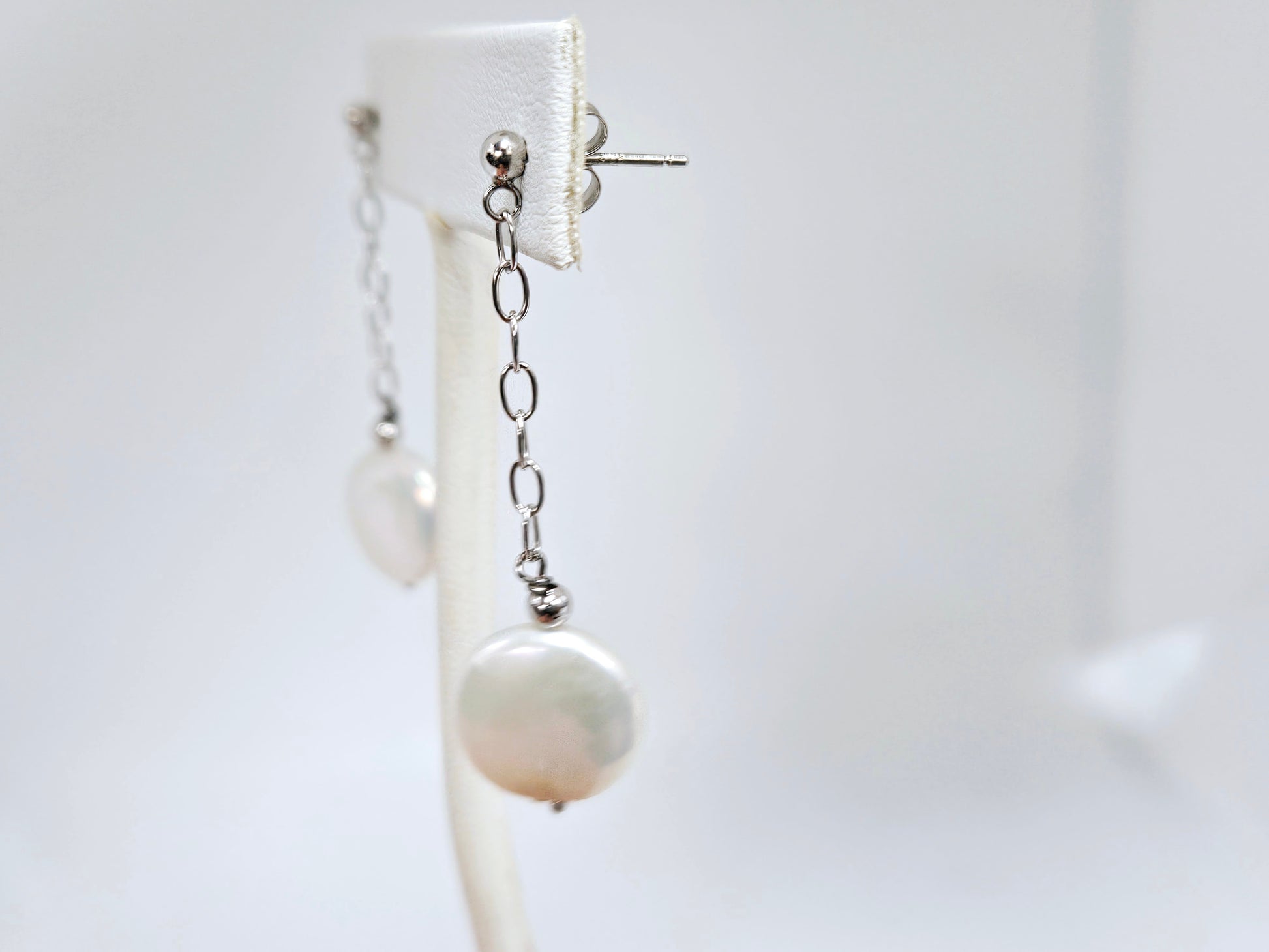 Made with 100% natural coin pearls, these sterling silver natural coin pearl earrings add a touch of elegance to any outfit. The sterling silver setting ensures durability and a secure fit. Perfect for special occasions or everyday wear.