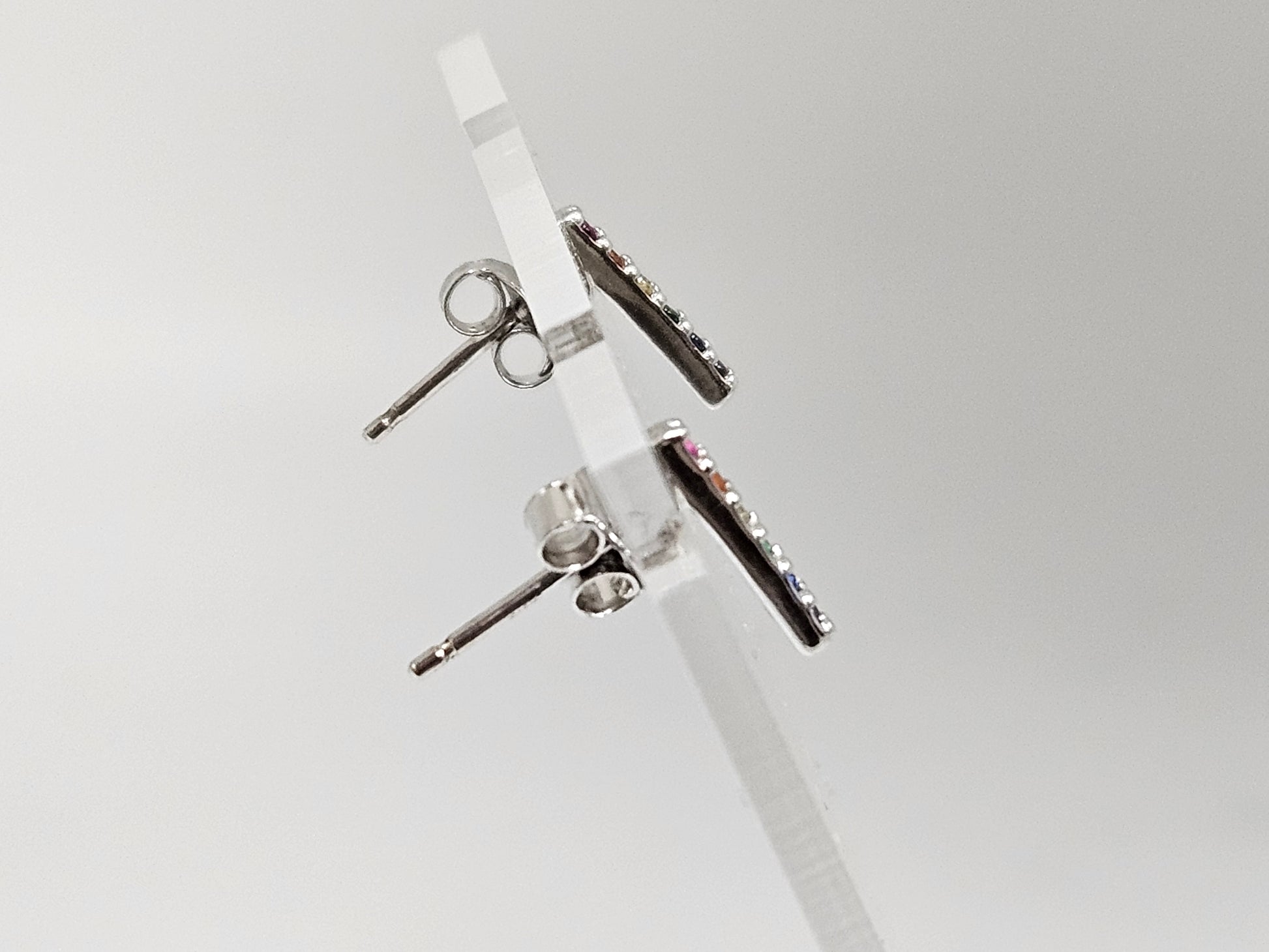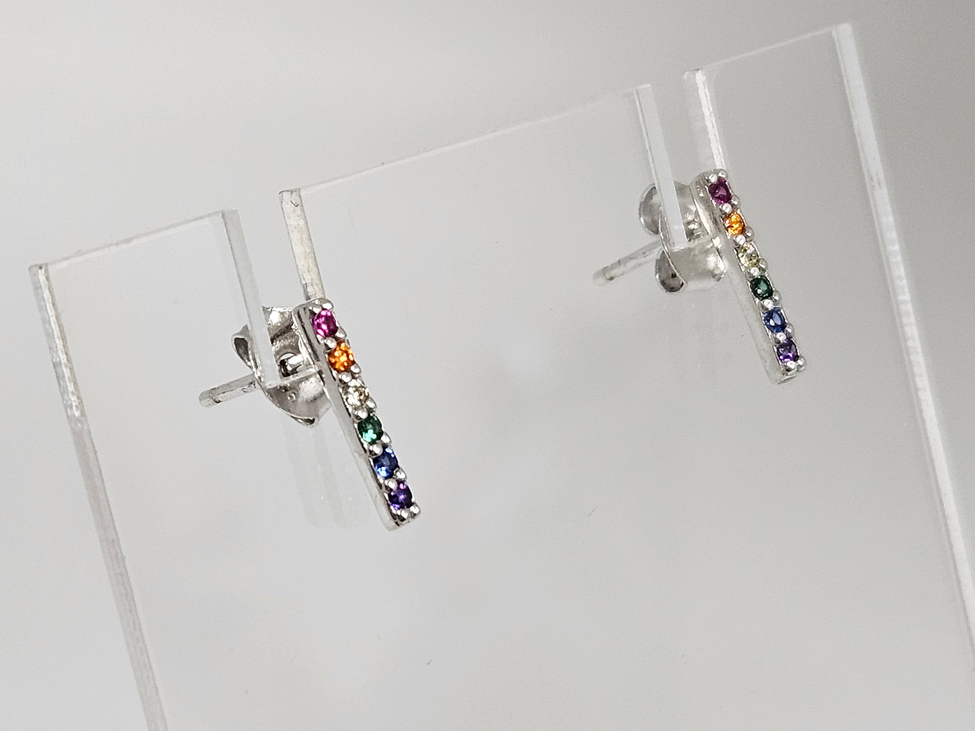 Crafted from durable stainless steel, these rainbow bar stud earrings add a pop of color to any outfit. With a sleek and modern design, they are perfect for adding a touch of style to your look. These earrings are a must-have for any fashion-forward individual.