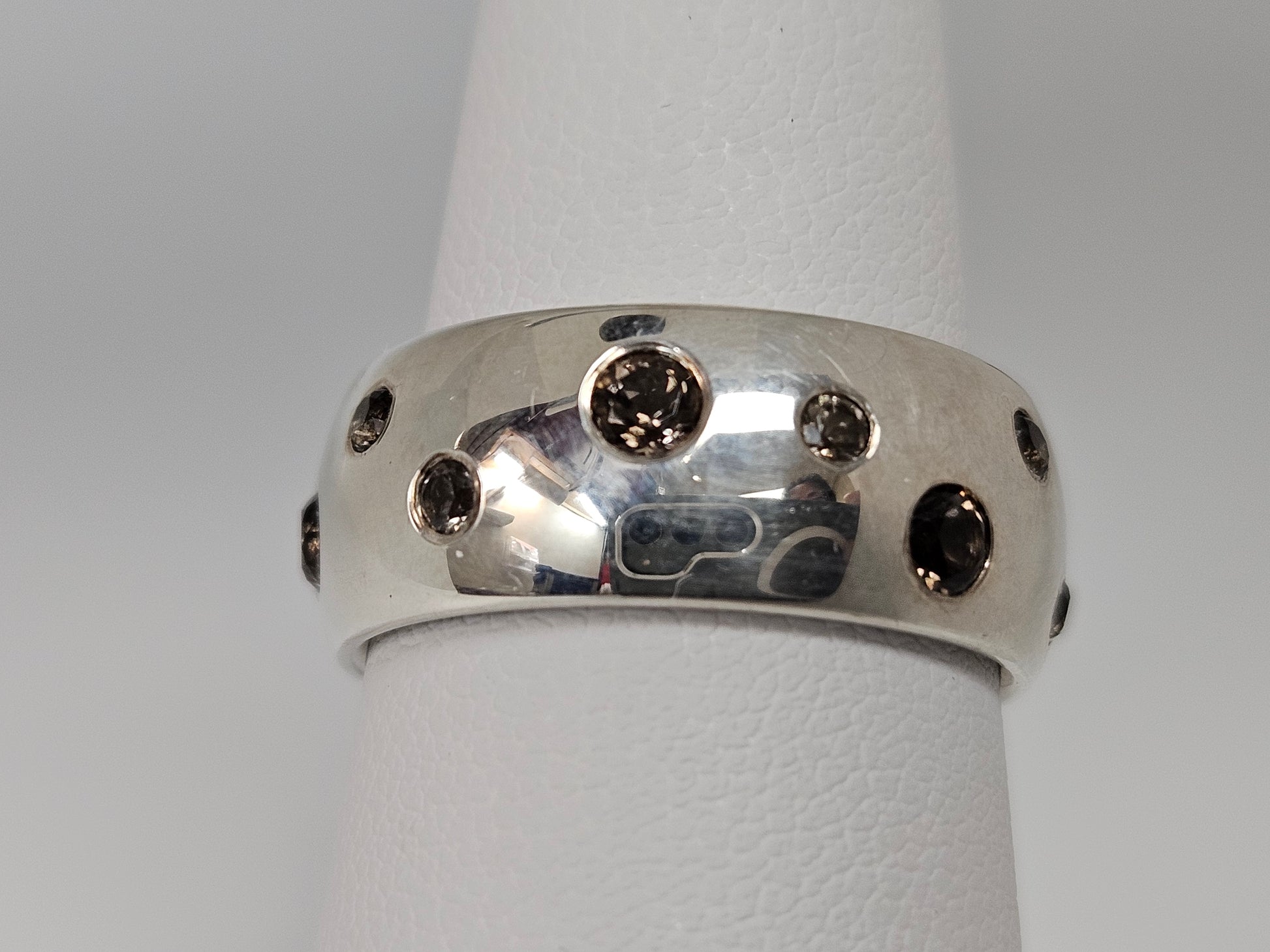 Sterling Silver 8MM wide Band W/Fancy color Topaz