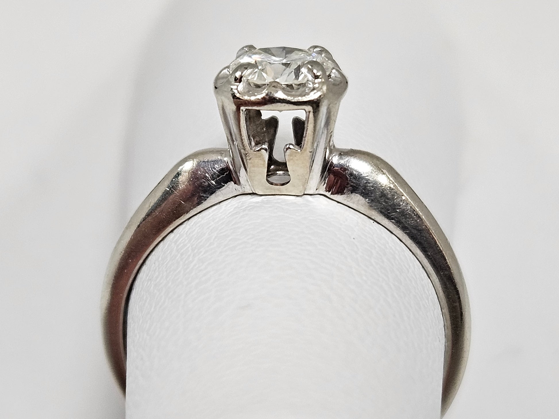 Crafted with white gold, this vintage solitaire ring features a stunning 0.5ct natural diamond with a color grade of F and a clarity grade of VVS2. Elegant and timeless, this ring is perfect for any special occasion and adds a touch of luxury to any outfit.