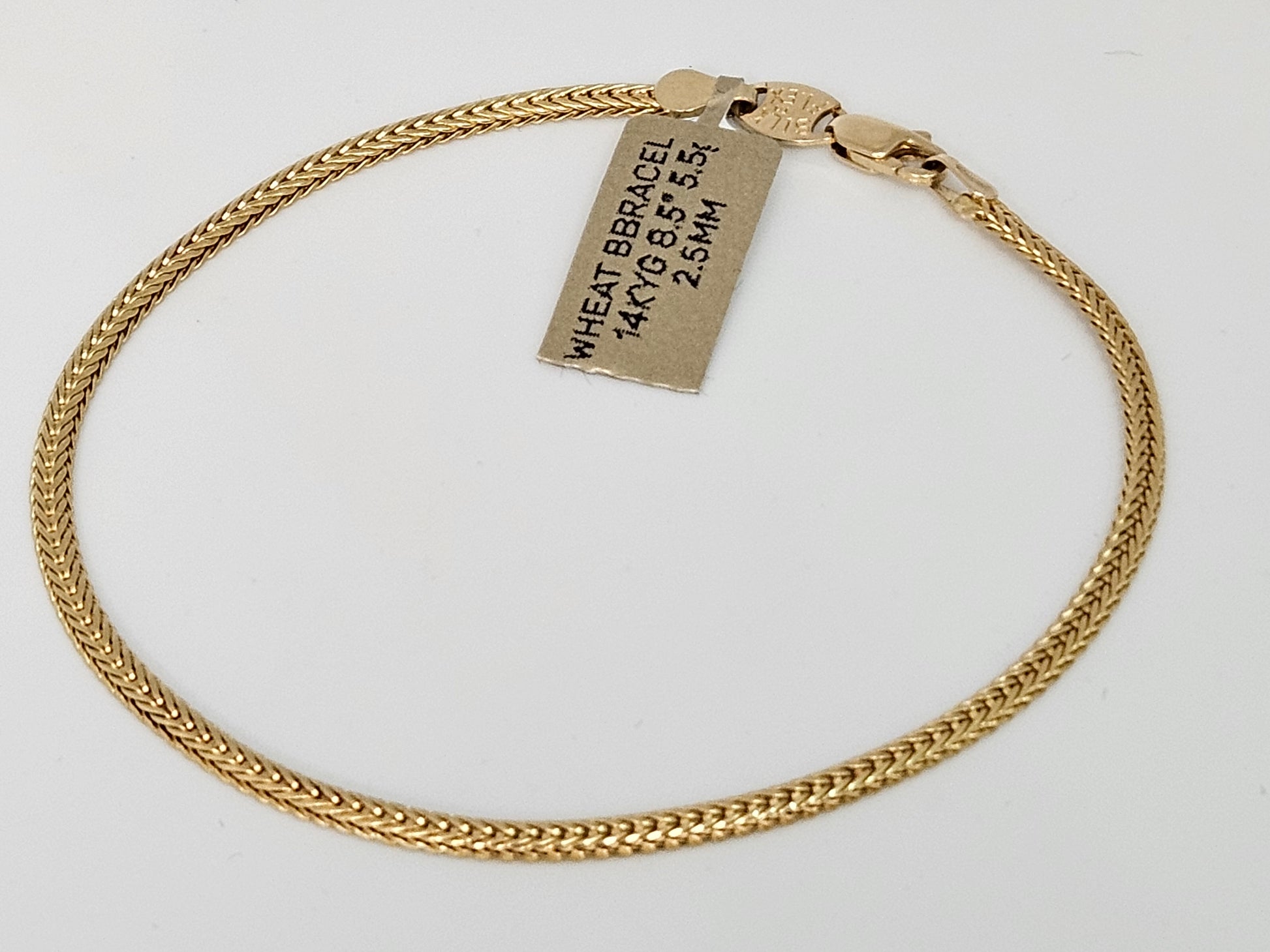 Wheat Bracelet 14KYG 8.5" 2.5mm 5.5g