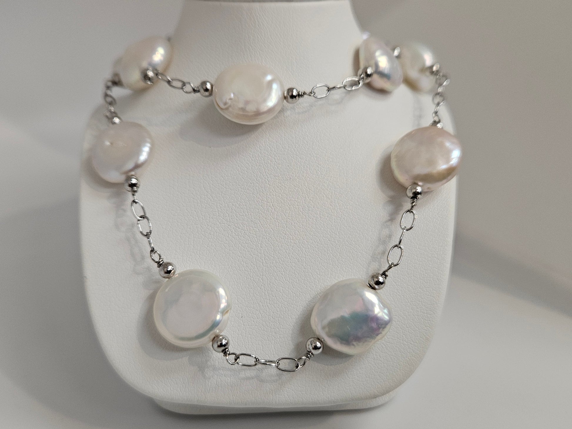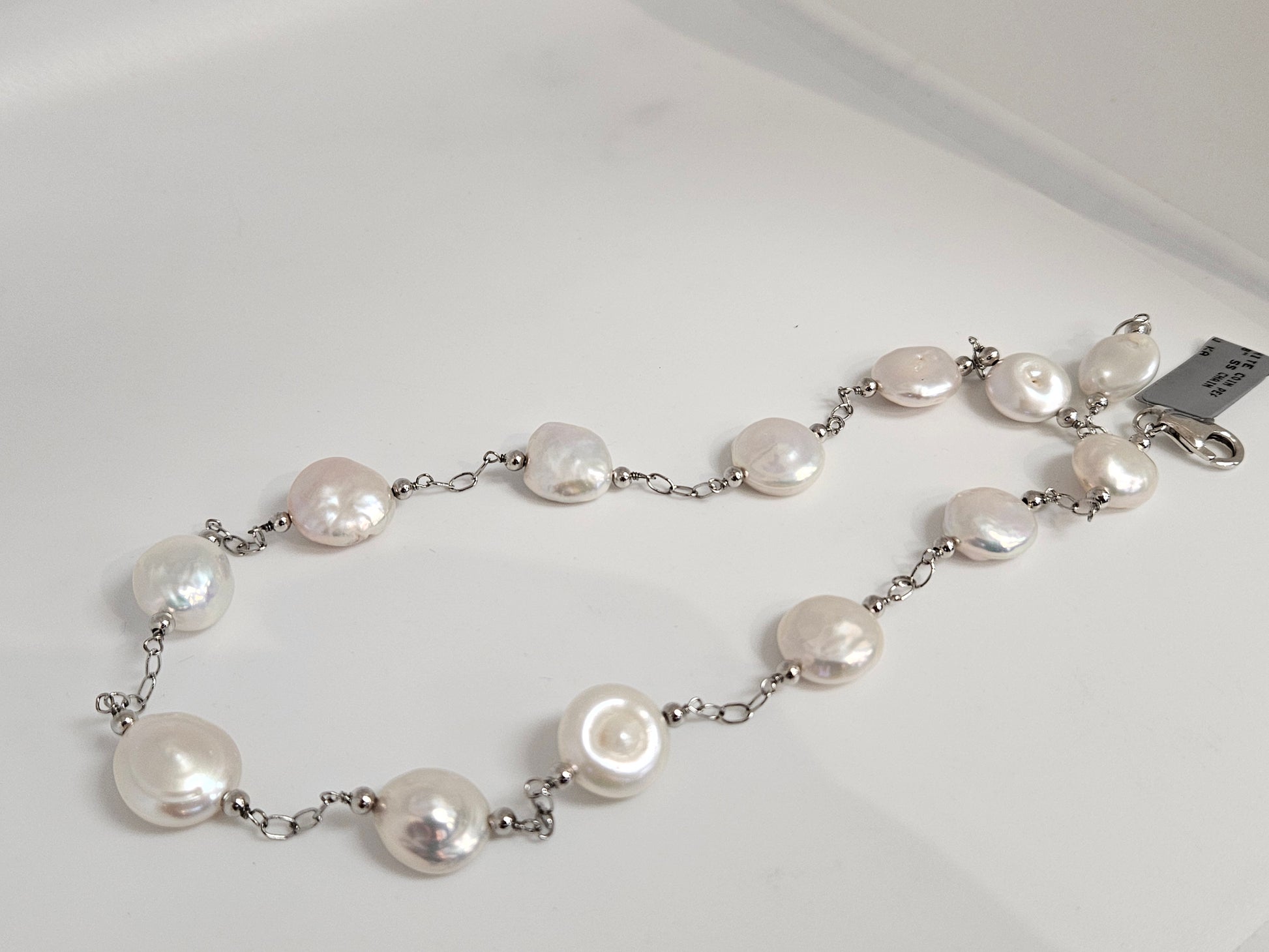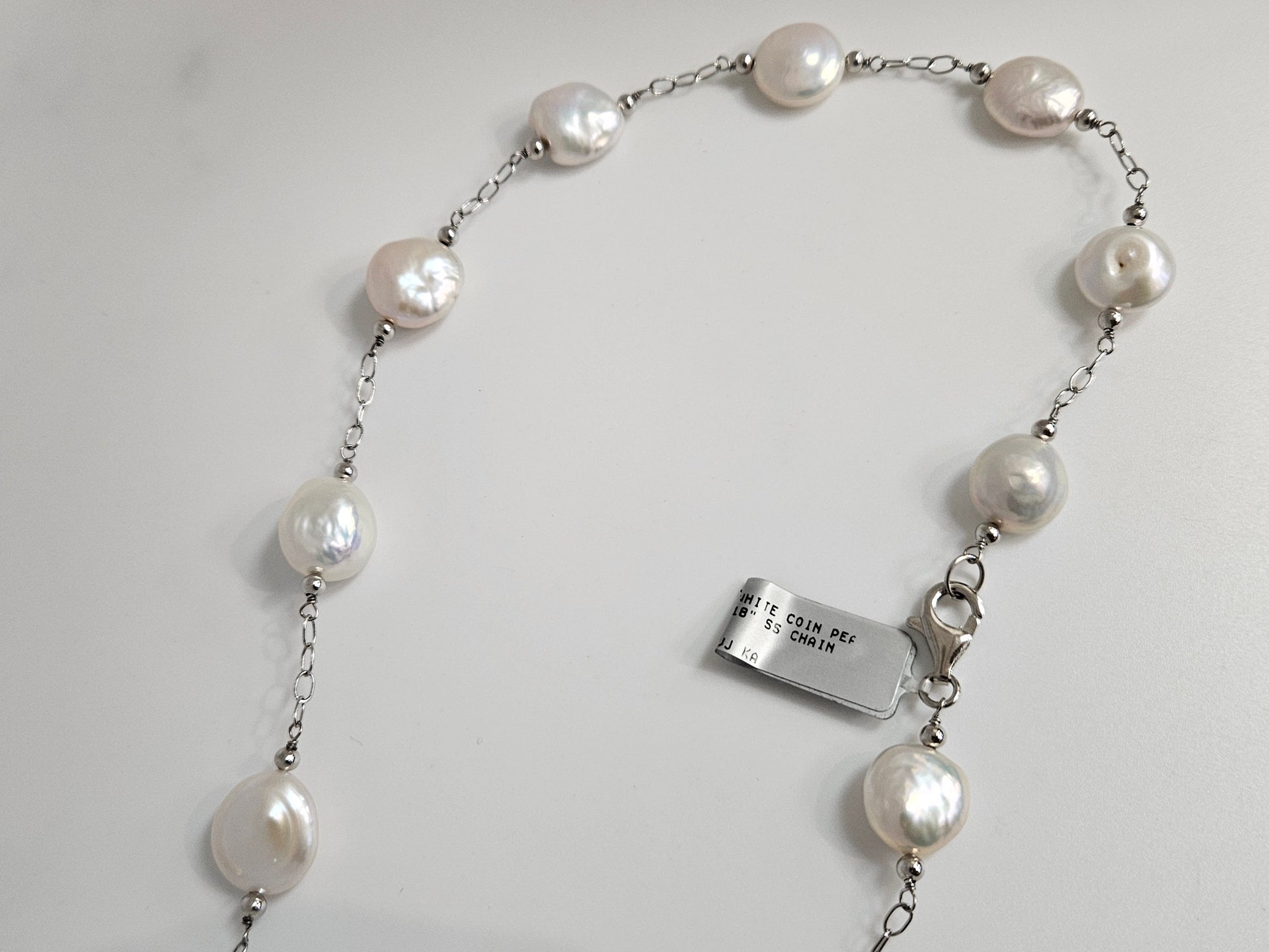 WHITE COIN PEARL NECK 18" SS CHAIN