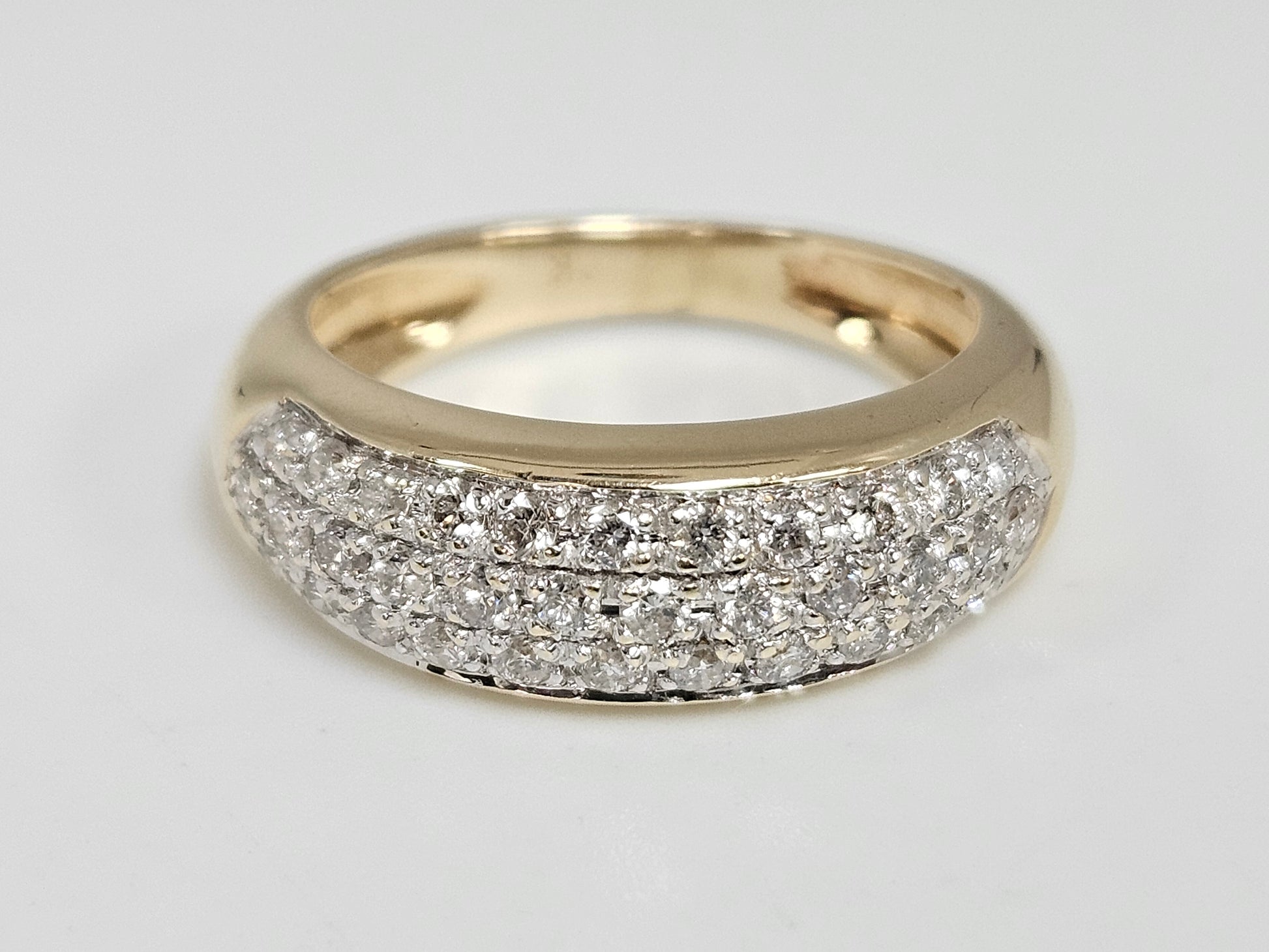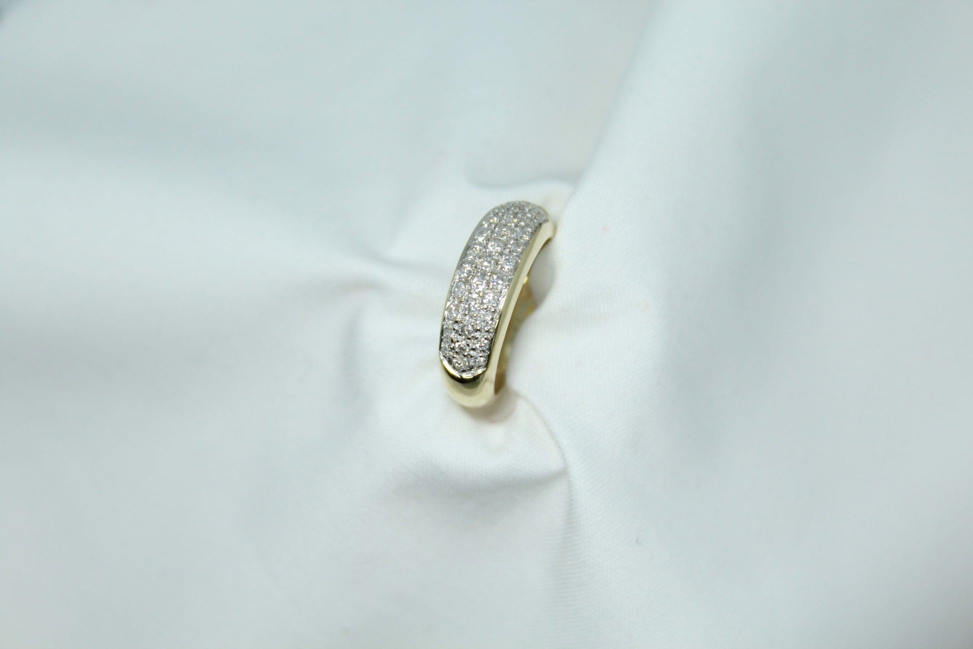 This Pave Ladies Ring features .55CT diamond and is made of 18KT yellow gold. With its timeless vintage design and high-quality materials, this ring is both elegant and durable, making it a perfect accessory for any occasion. Elevate your style with this stunning piece.